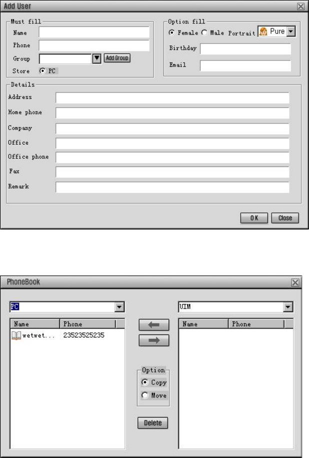 B. If you want to synchronize phone book between PC and UIM Card, click