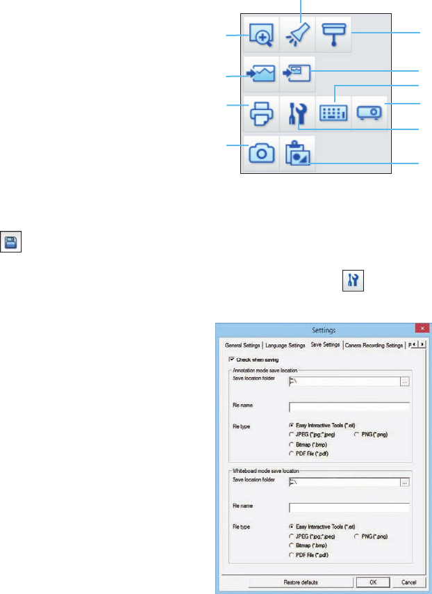 2 To select other locations and formats for saving, select the Settings tool, then select the Save settings tab as