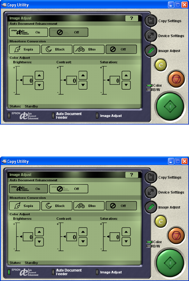 Click on the “Image Adjust” button. You will notice the Auto Document Enhancement OFF