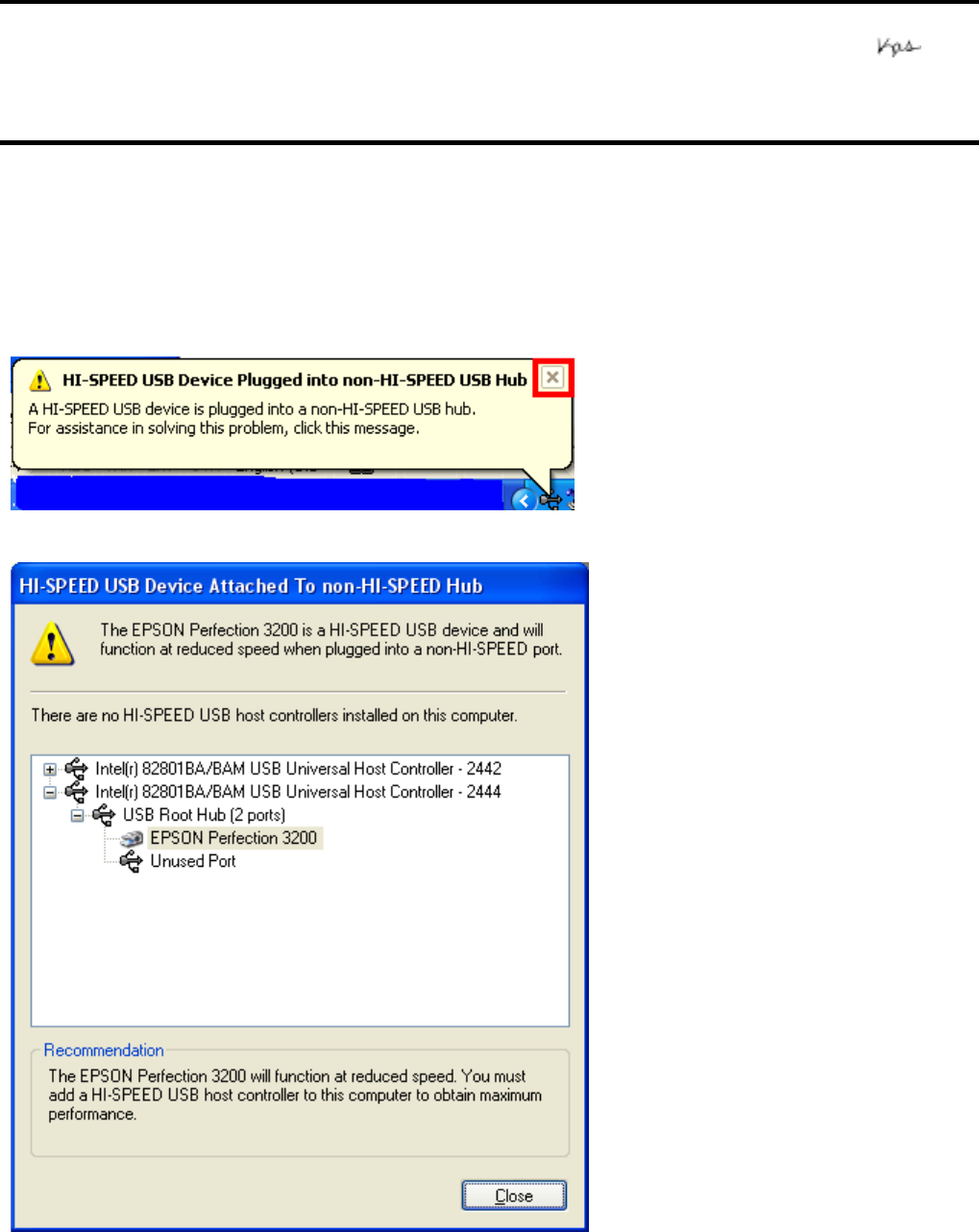EPSON HI-SPEED USB (USB 2.0) scanner is connected to a non-HI-SPEED USB (USB 1.1) Port.
