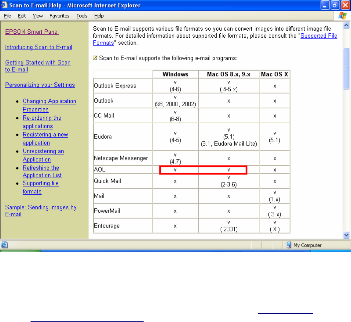 According to the Table of supported e-mail applications in the Scan to E-mail Help file – AOL