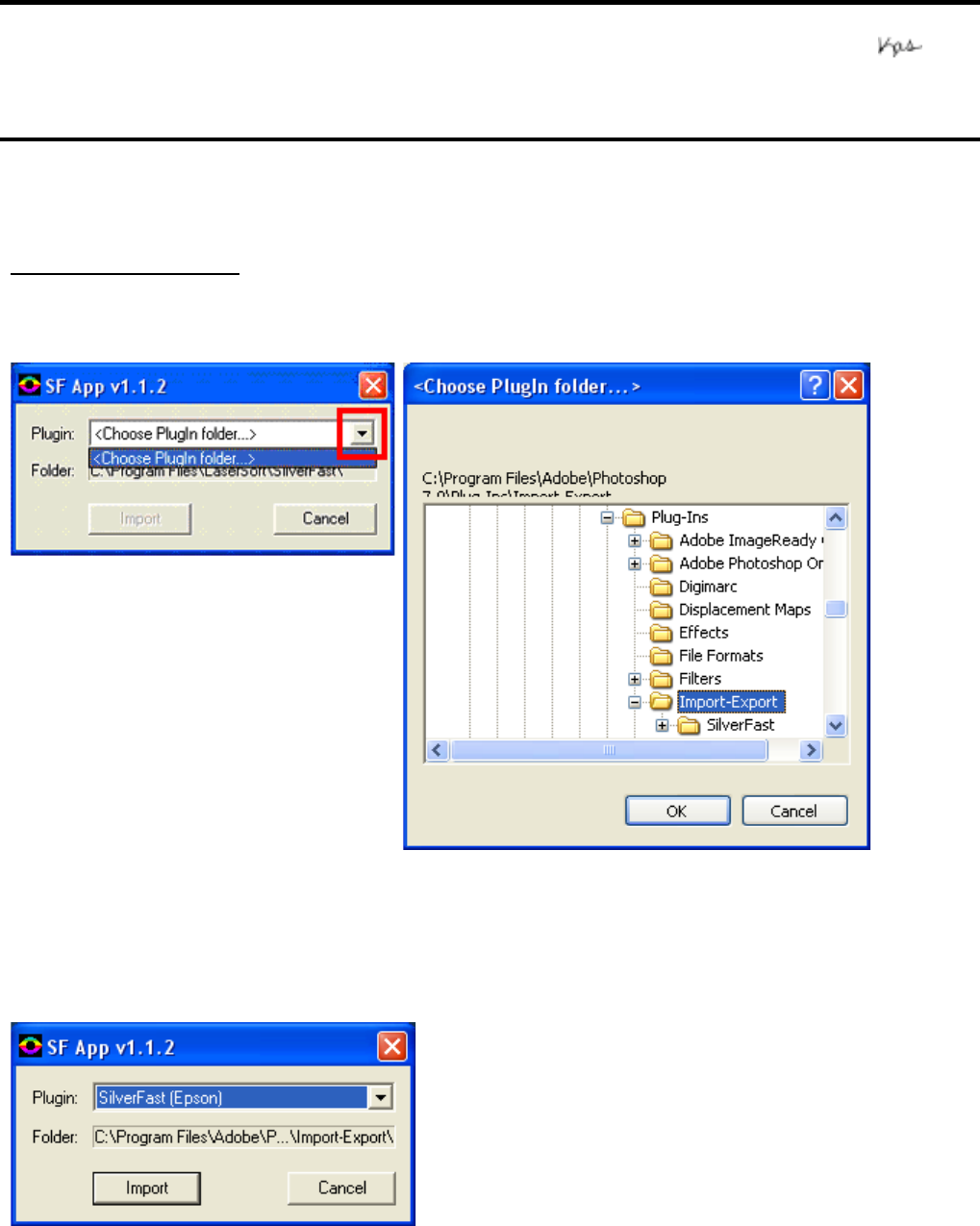 display “SilverFast (Epson)” in the PlugIn window as shown in the example below.