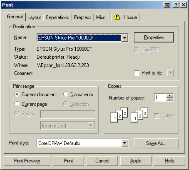Print jobs being sent through the Epson standard print driver should be in the RGB format in order for color management to be