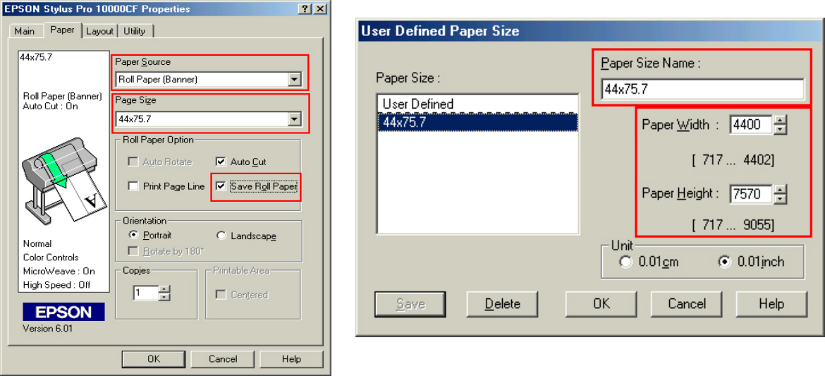 when the Epson driver and media are used all of these values are pre-configured and do not require a custom paper