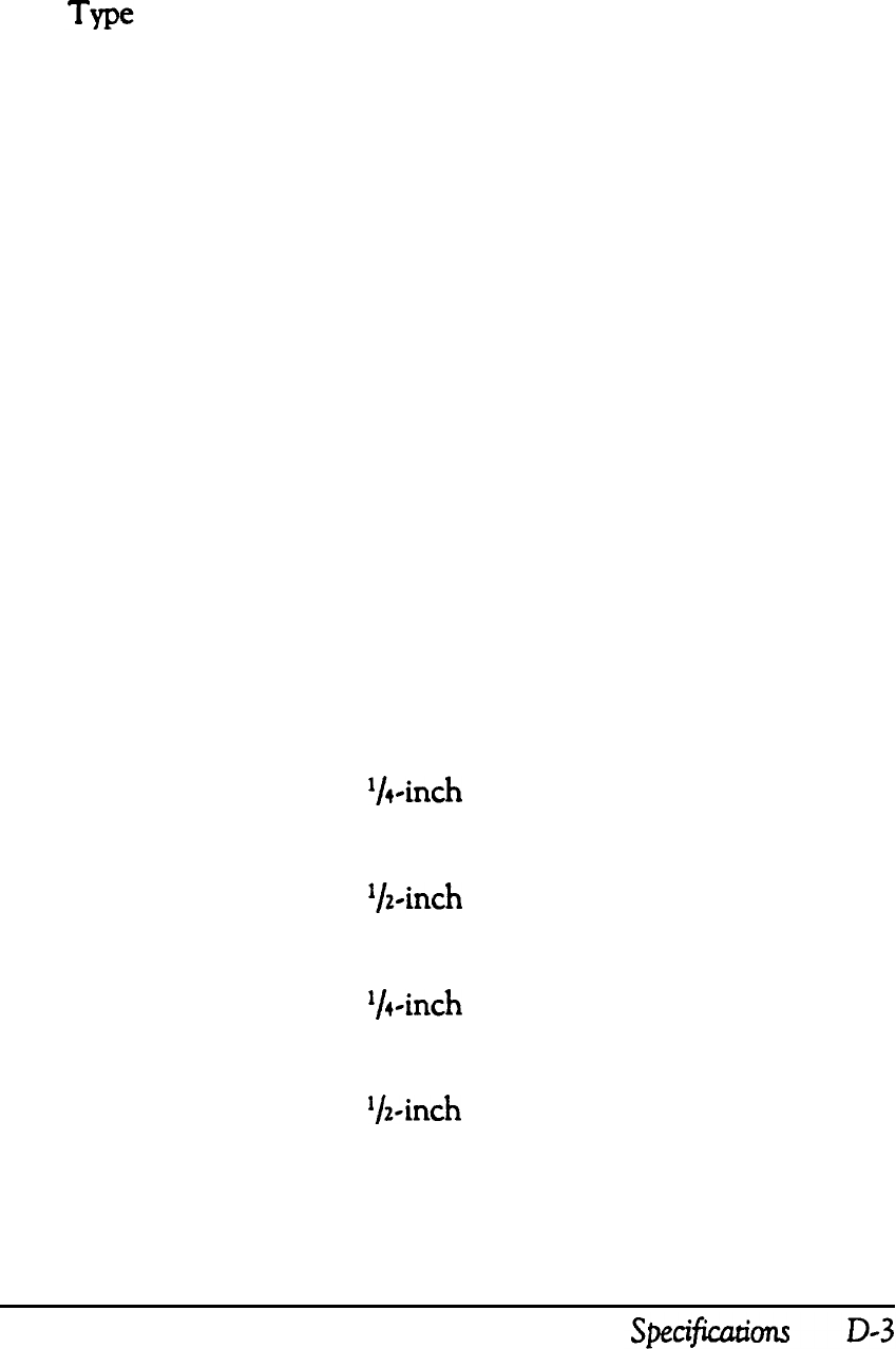 - APPENDIX D-SPECIFICATIONS