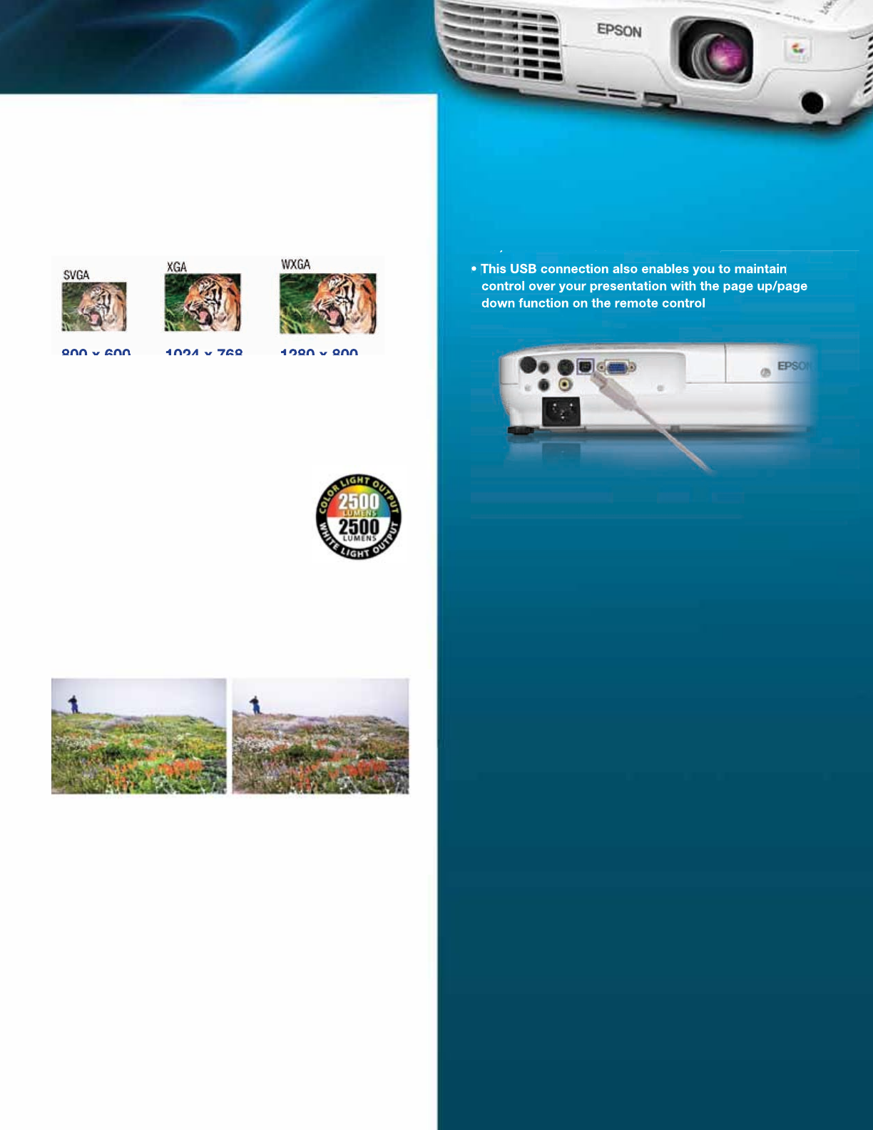 thanks to Epson’s innovative 3LCD, 3-chip technology. With 2500 lumens of color light output and