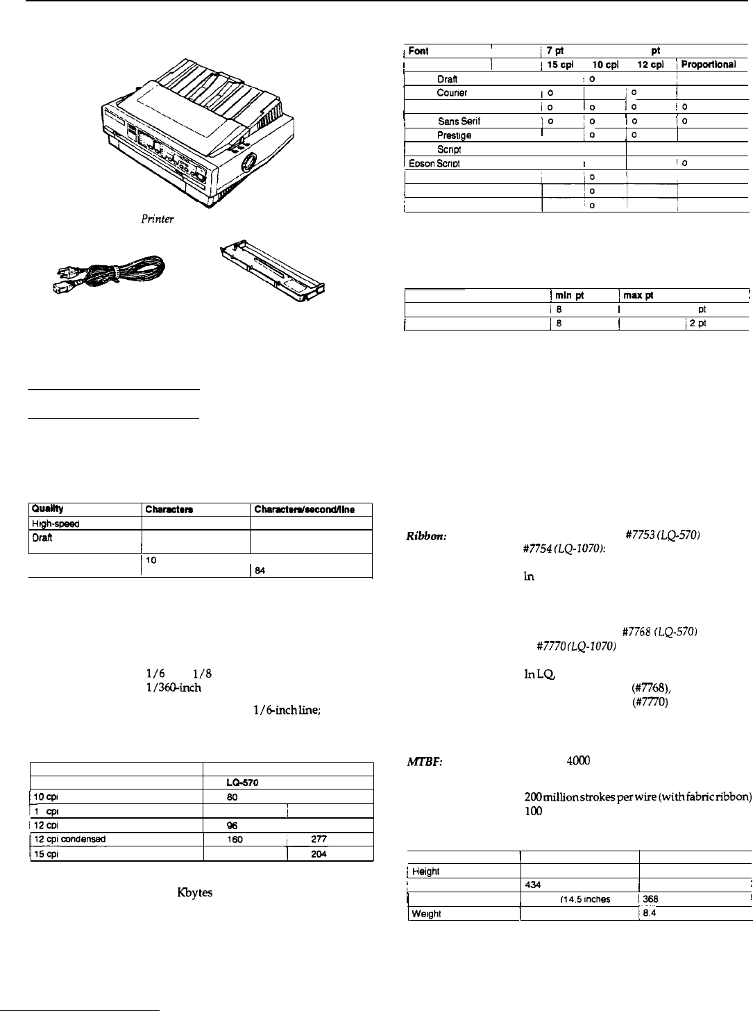Epson Specifications LQ 570/1070 Lq570 Pg