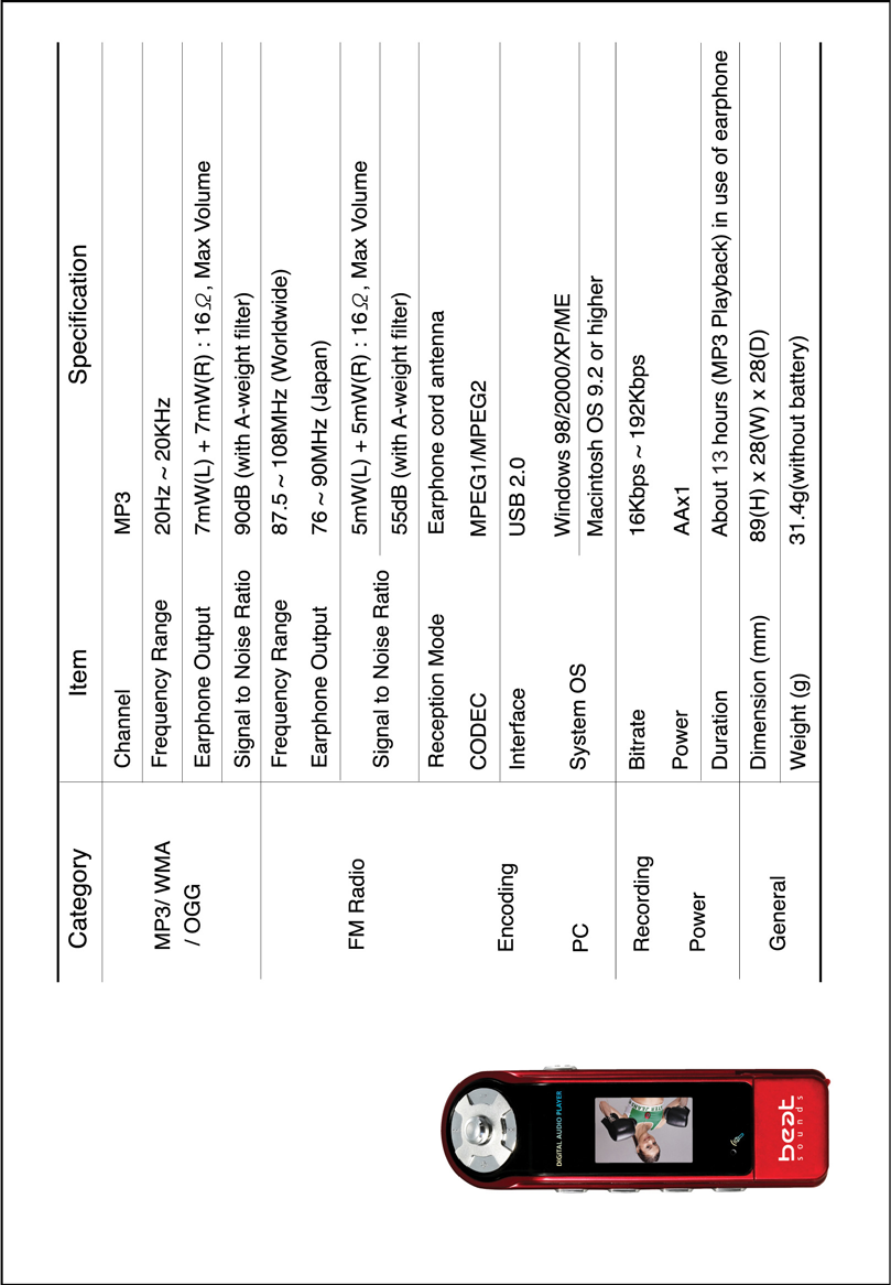 Eratech Co EMP-300 MP3 Player User Manual