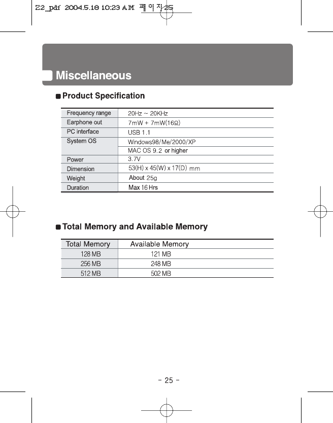 Eratech Co, Ltd Voice Recorder with MP3 Player Z2 pdf