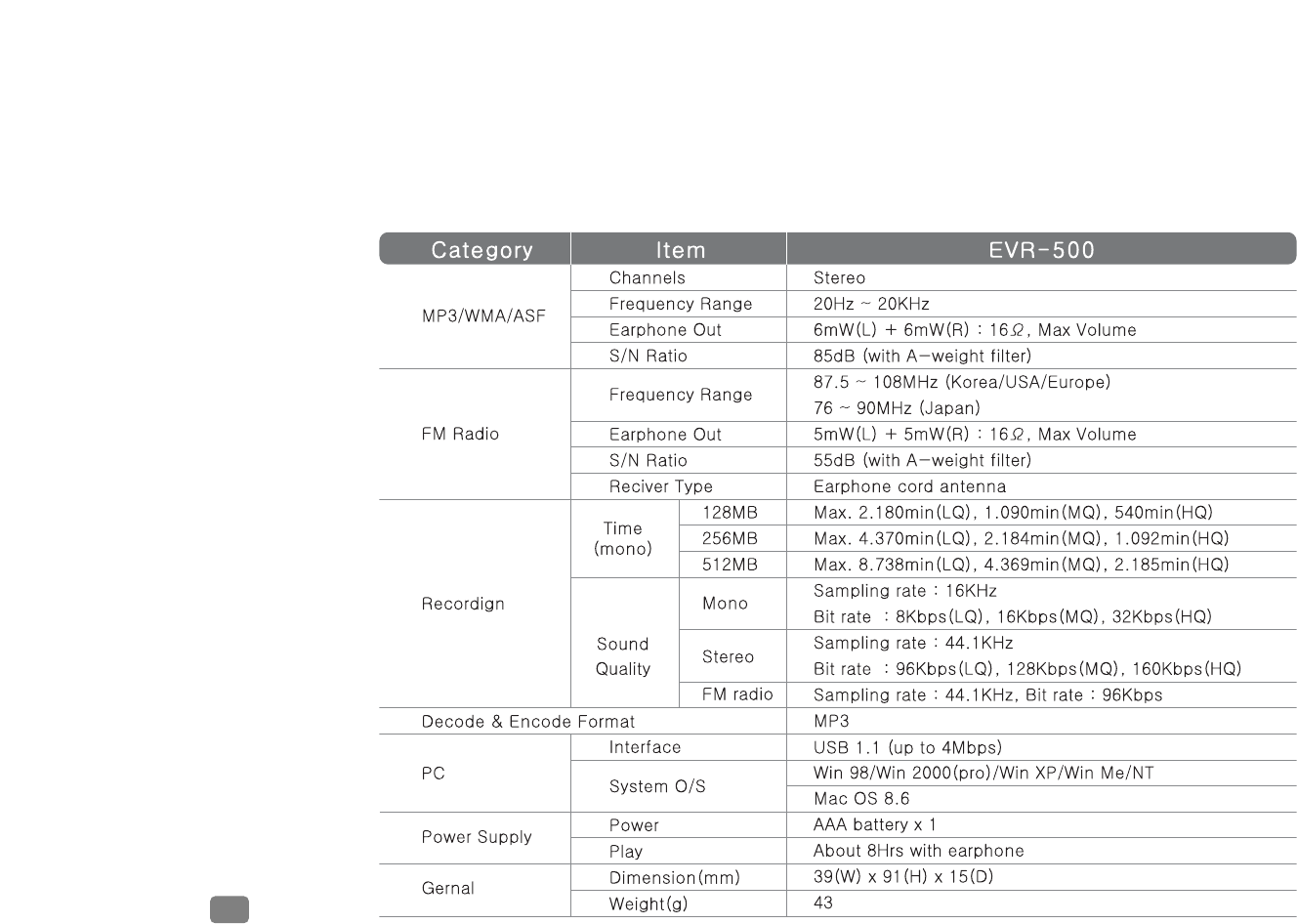 Eratech Co EVR-500 Portable Digital Audio Player User Manual Eratech FCC EVR 500