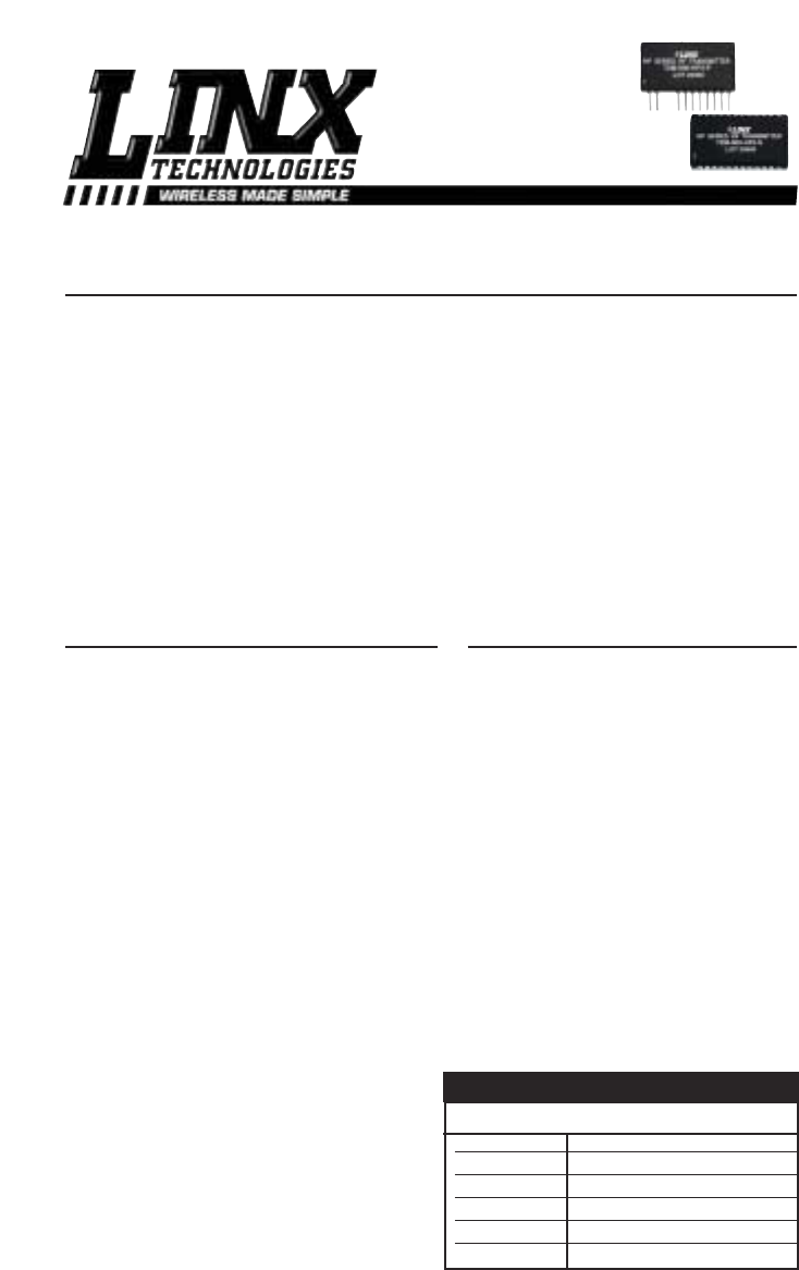 full liability for the use of product in such applications. Under no conditions will Linx Technologies
