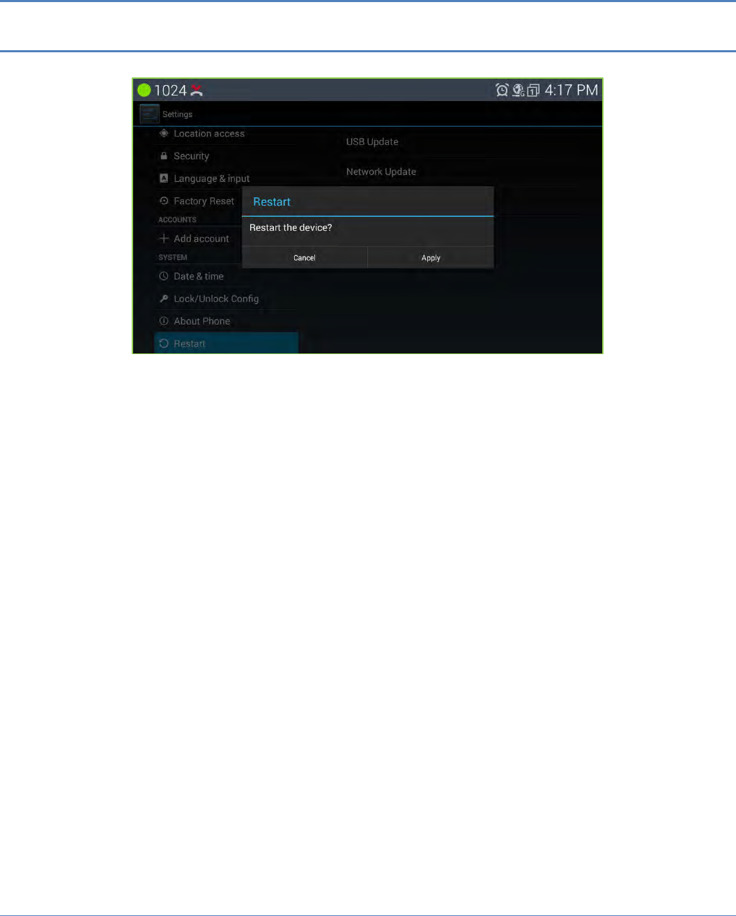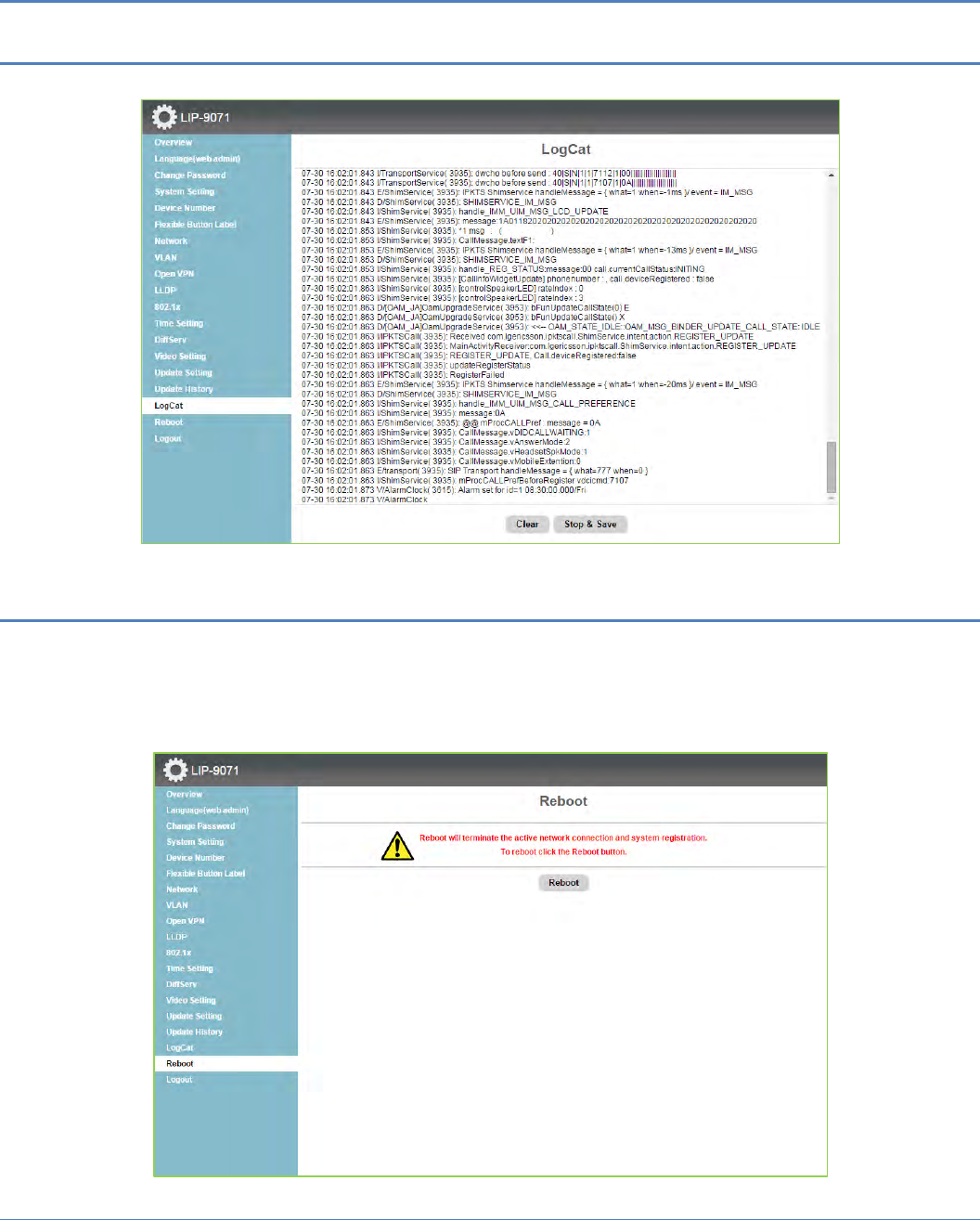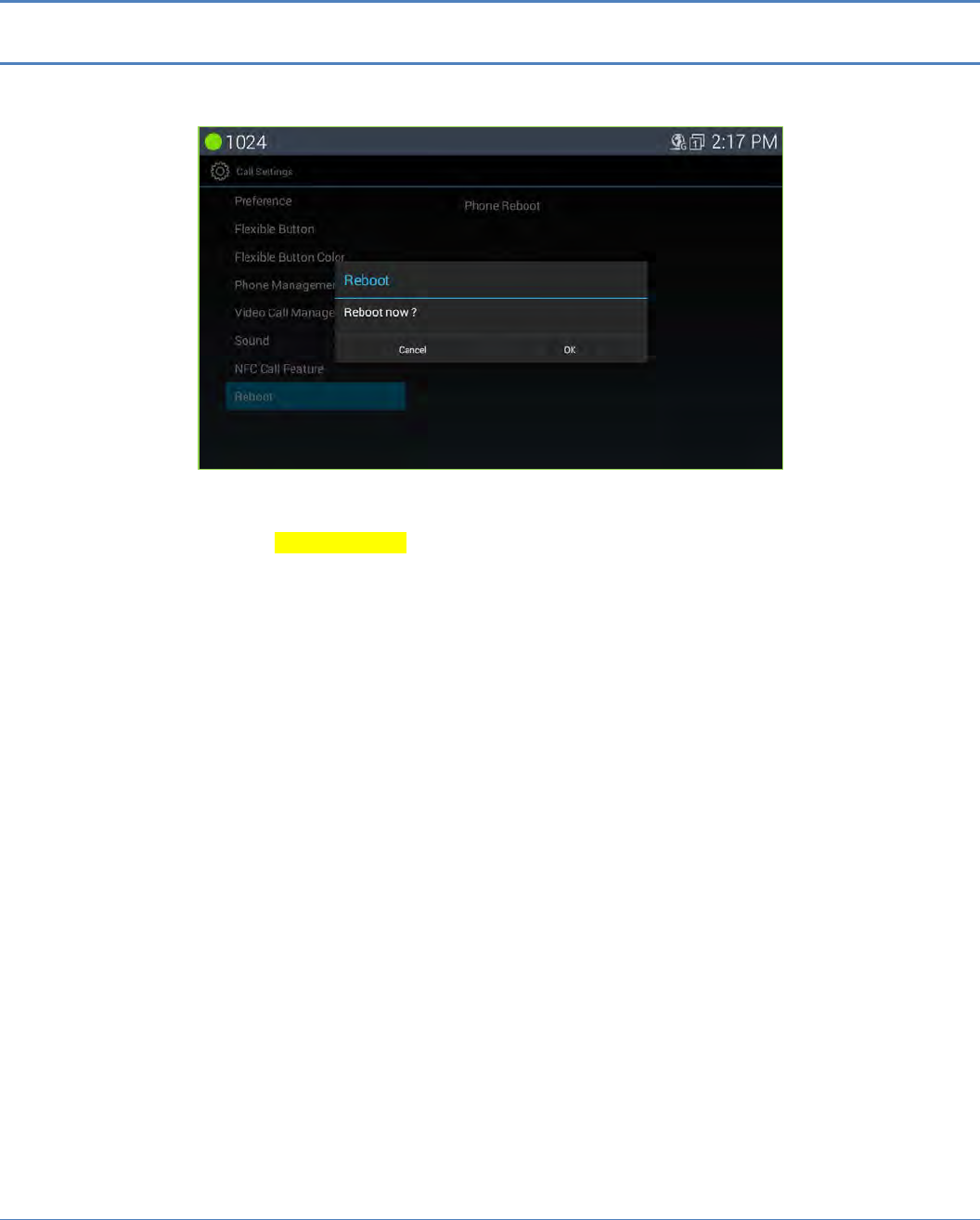 A reboot will terminate all network connections and registrations with an iPECS host. After the reboot the phone