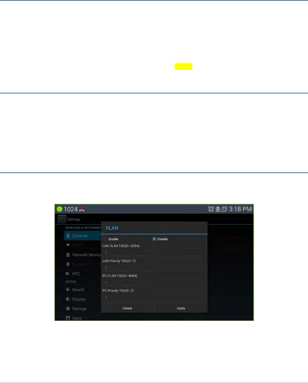 VLAN Status, enter a priority and id for both the LAN and PC port and save the changes.