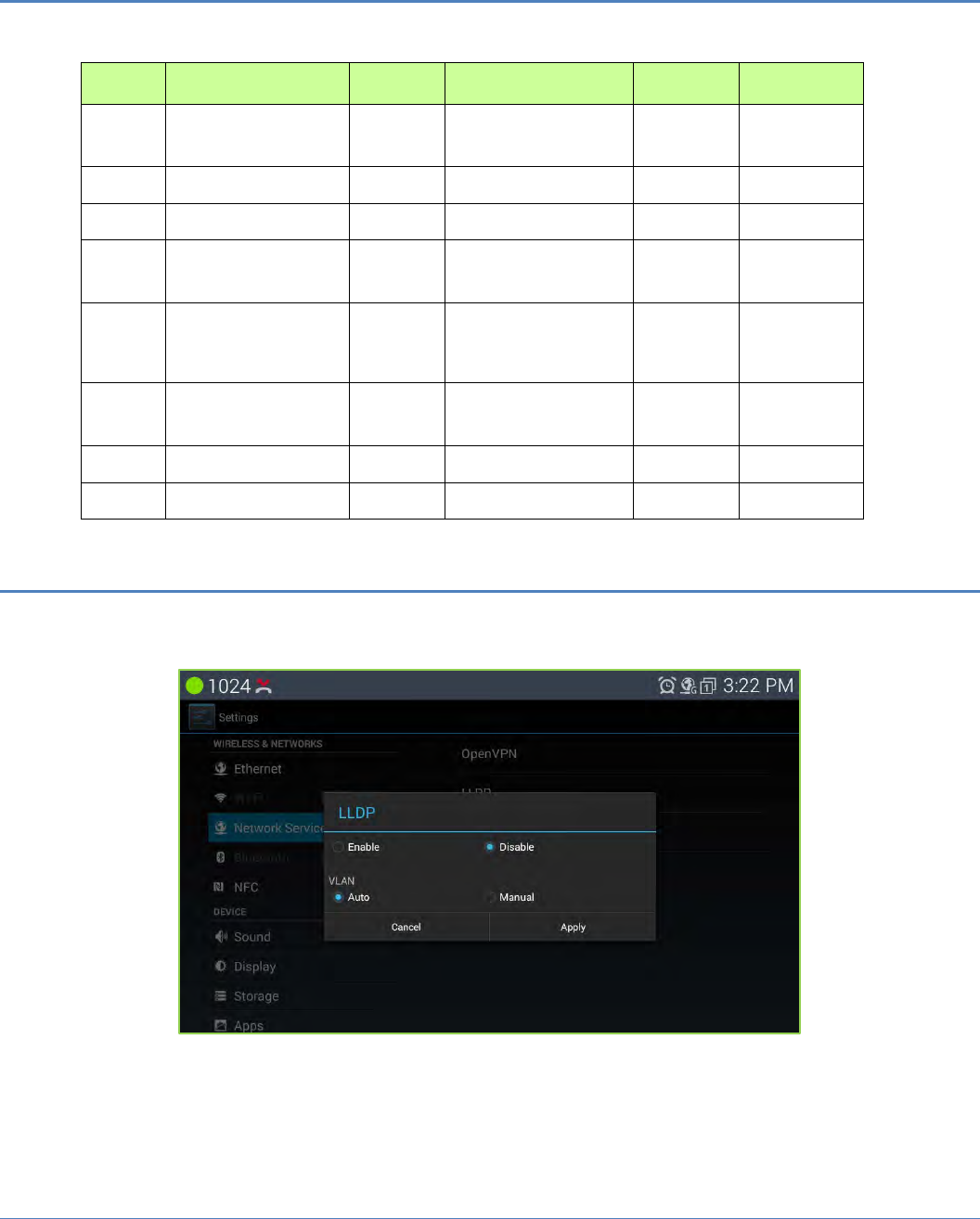 VLAN settings for both the LAN and PC ports when LLDP is enabled.