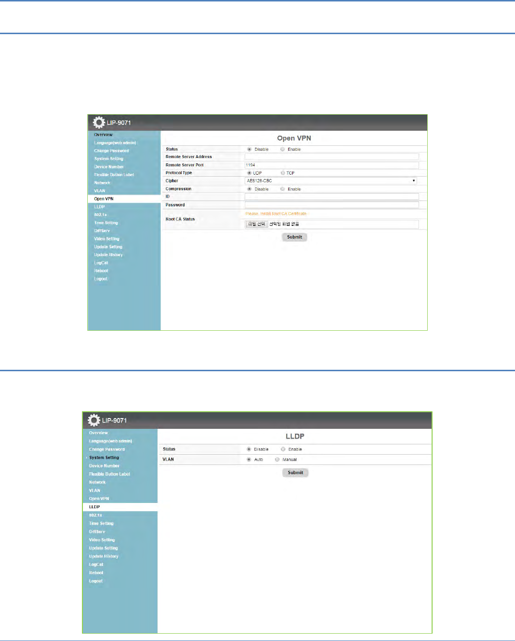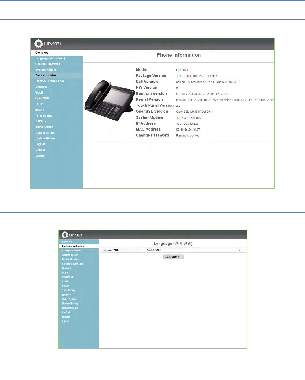 The change language menu for language selection between English and Korean is only for LIP-9071 web admin