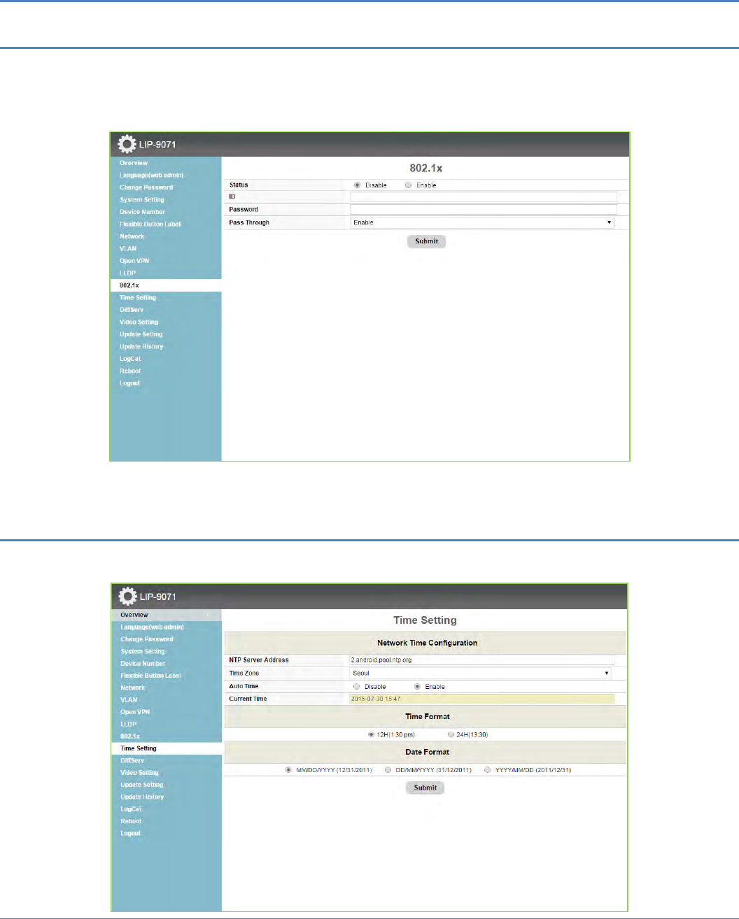 NTP (Network Time Protocol) Server Configuration defines the URL of an NTP sever the LIP-9071 will employ to