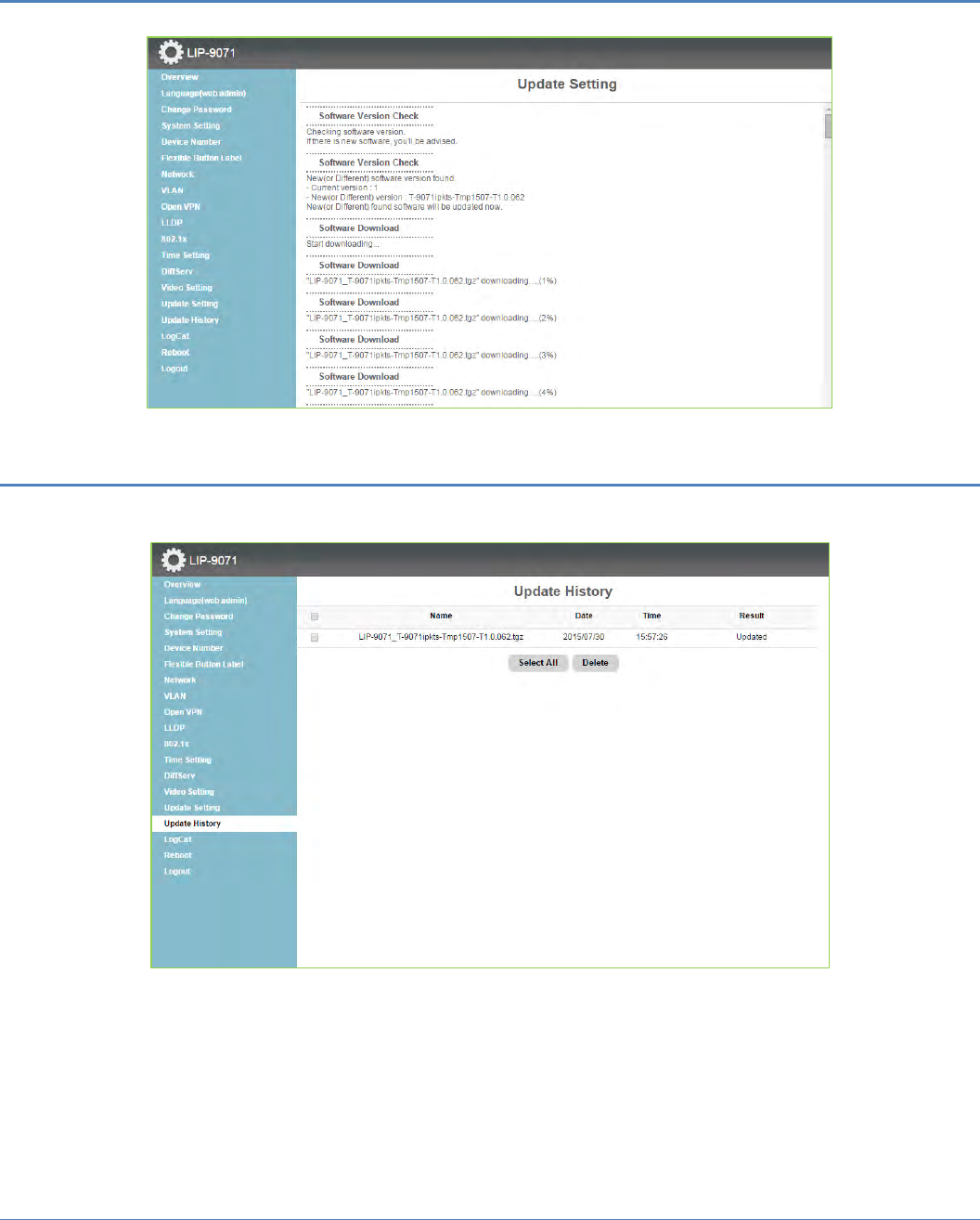 Update history shows all package installation history of LIP-9071. Also selected history list can be deleted using