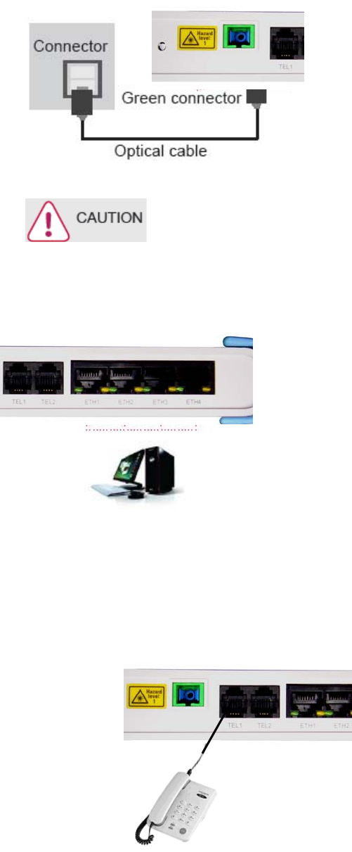 Make sure that both ends of the optical cable and the Ethernet cables are installed. And insert the connector of adapter,