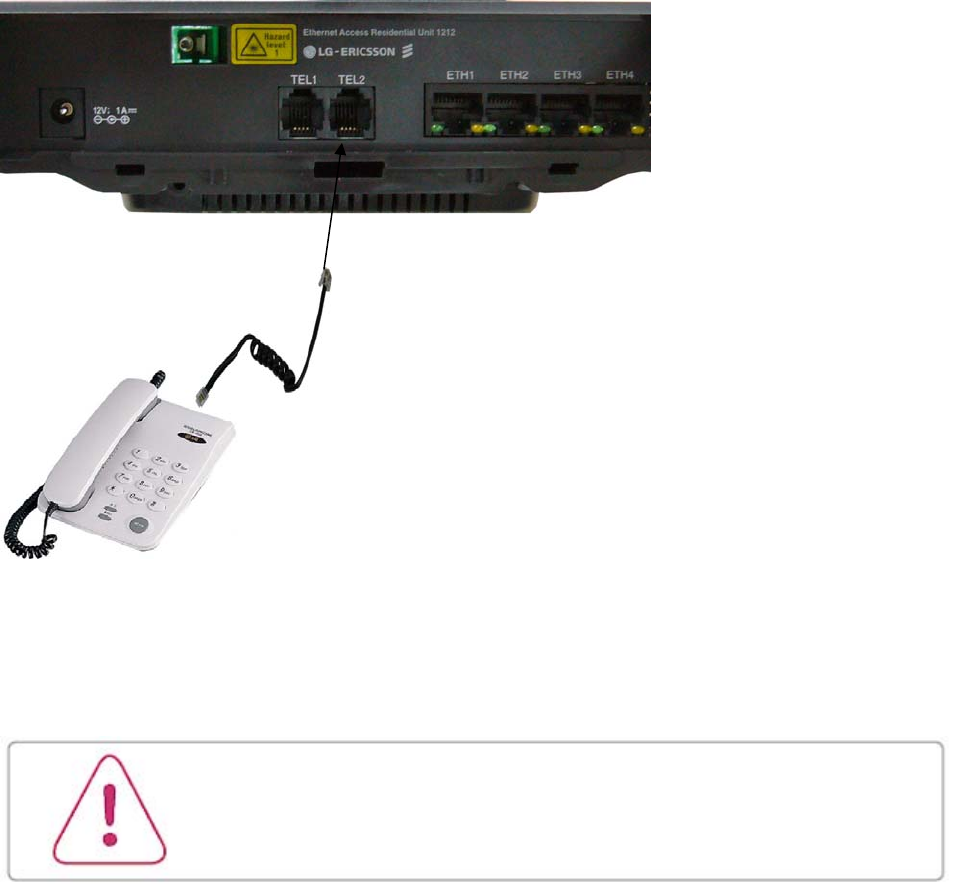 Connect Telephone cables to the RJ11 POTS port numbered 1 to 2 in EARU 1212 or 1312.