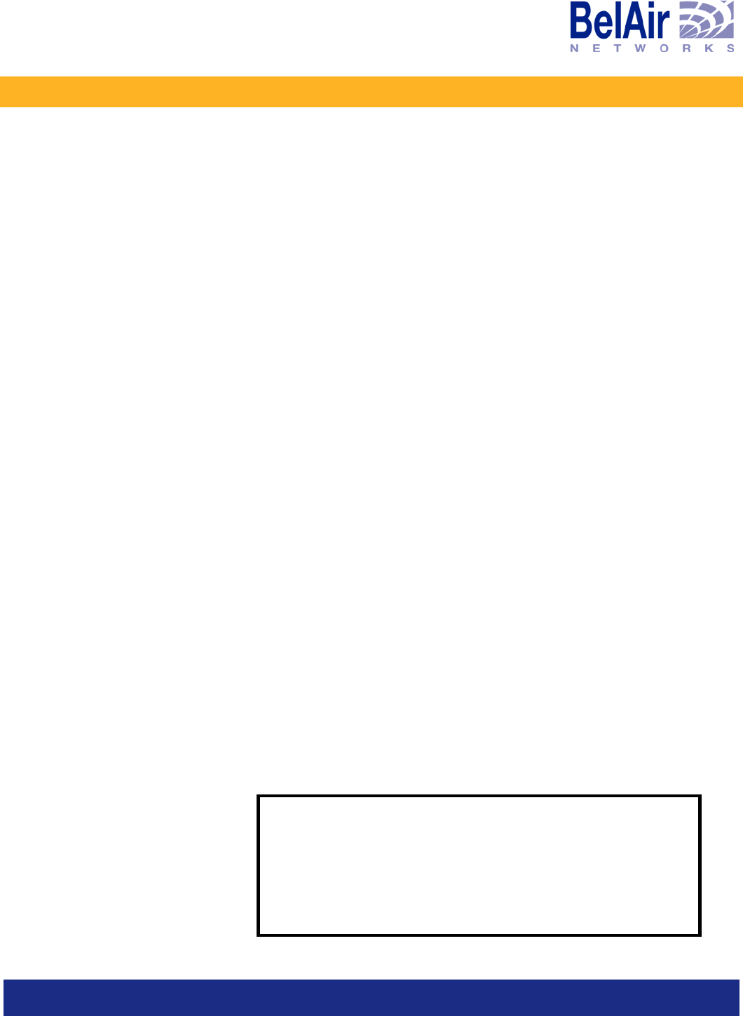 This manual is intended to supplement training provided by BelAir Networks