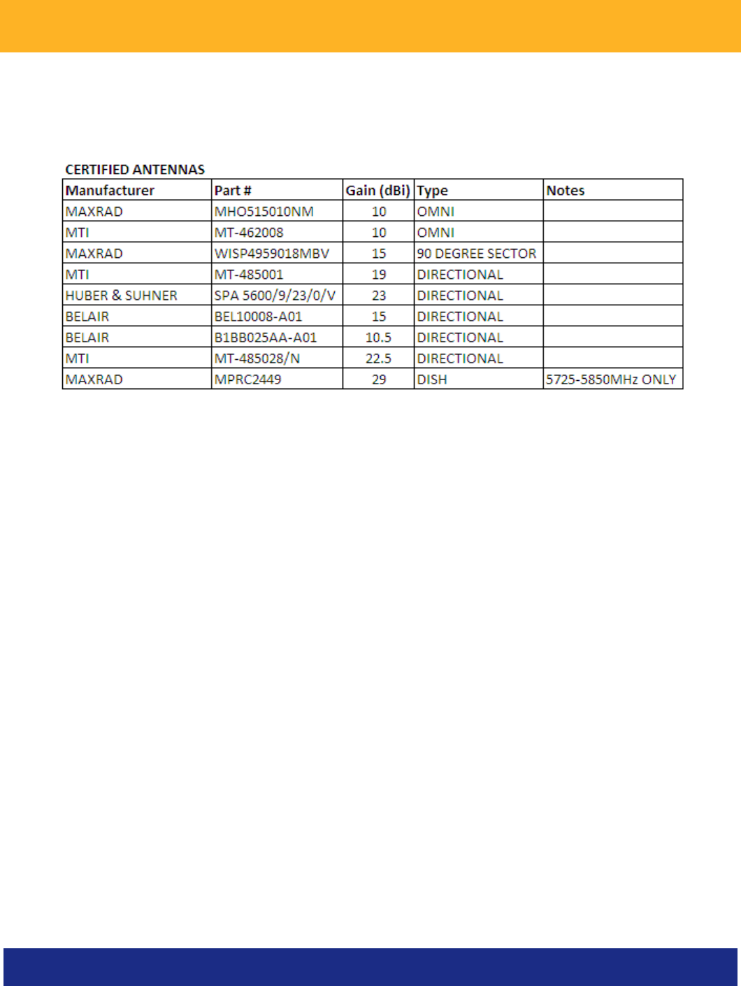 gain of 29 dBi. Antenna having a higher gain is strictly prohibited per regulations of