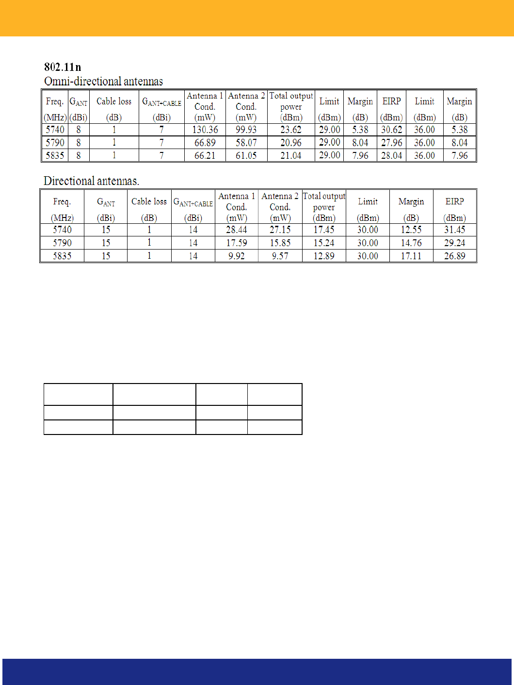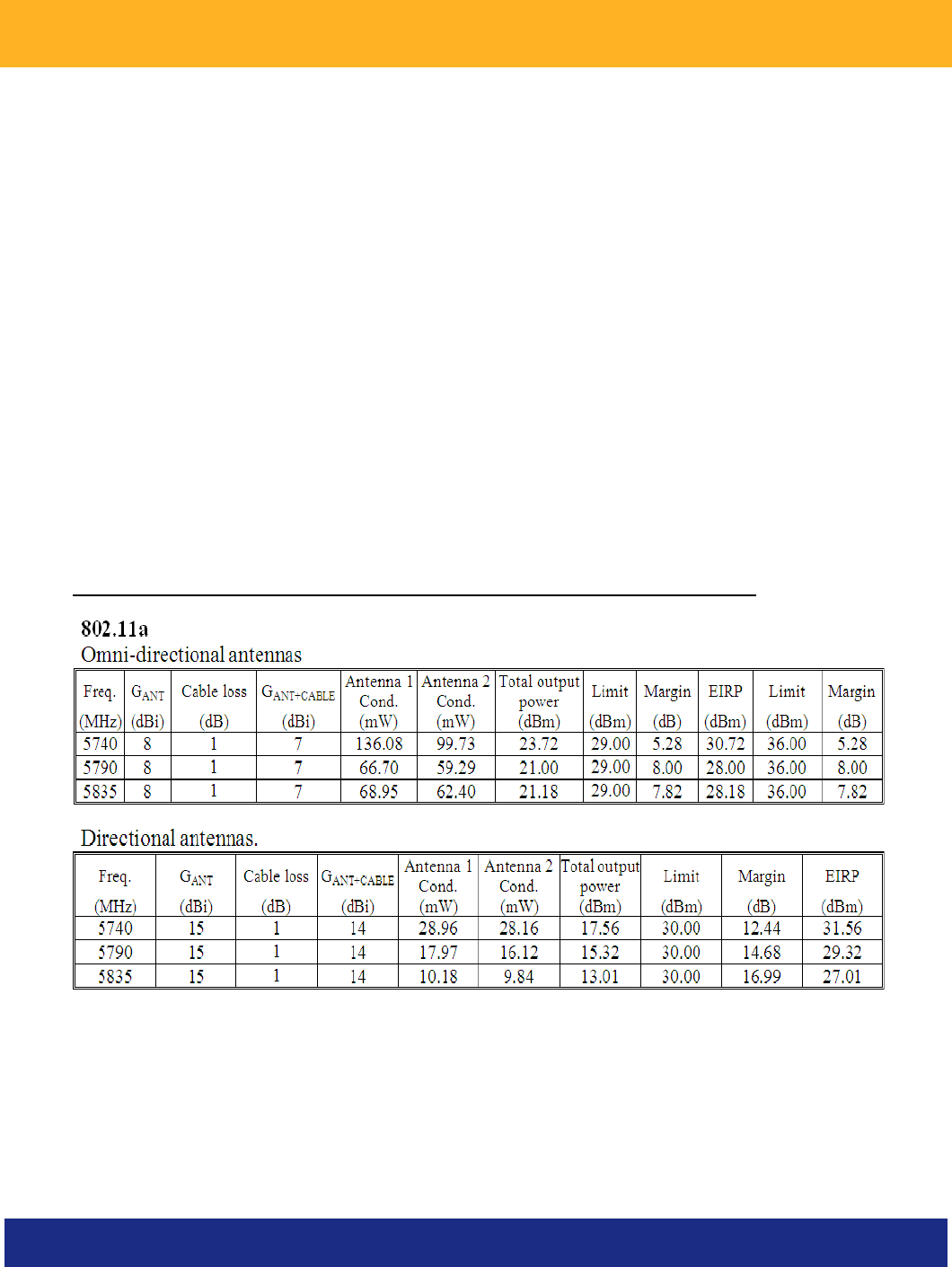 the following output power levels in conjunction with the following antenna types