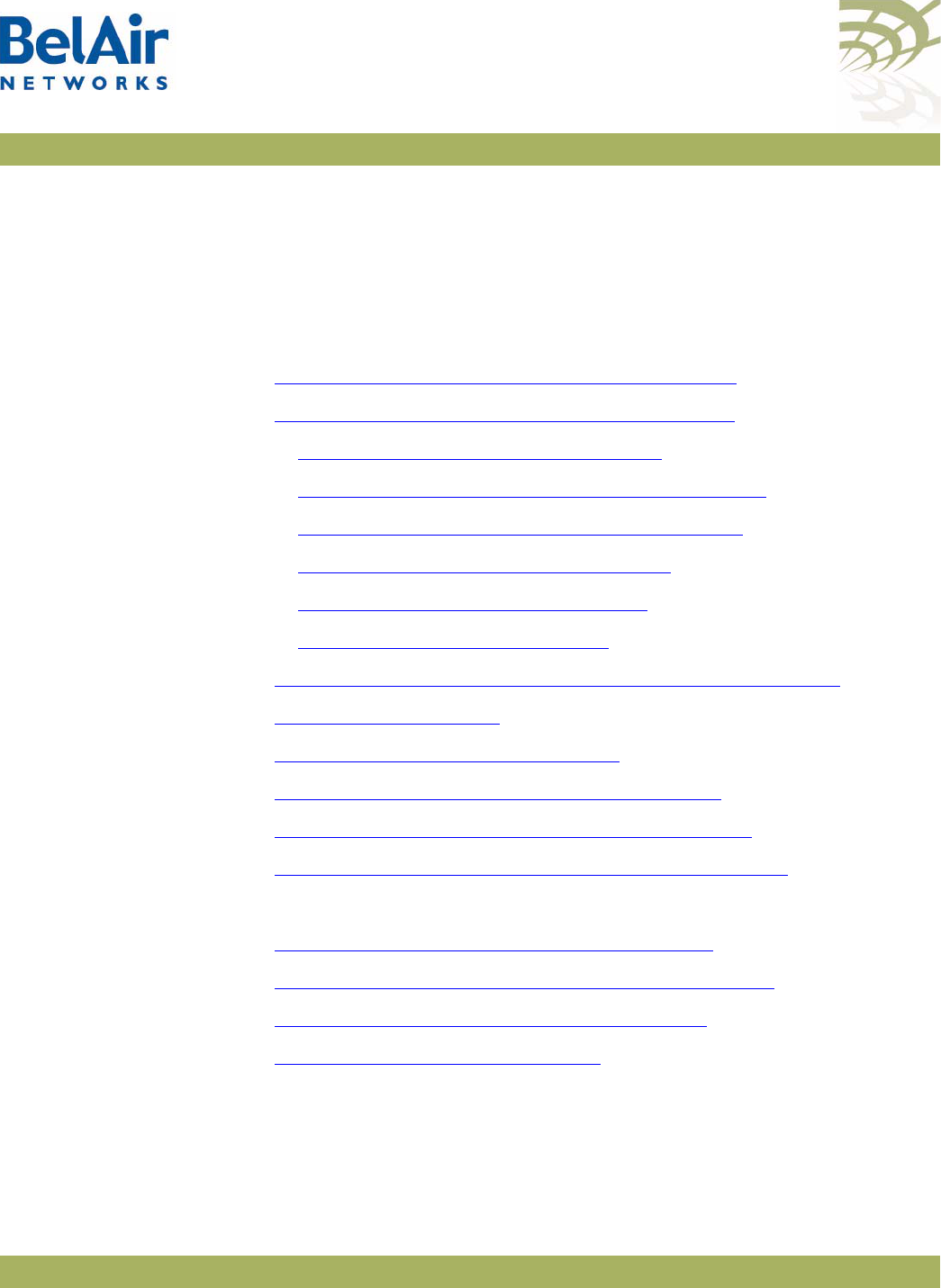 Table 3: BelAir Enterprise MIBs . . . . . . . . . . . . . . . . . . . . . . . . . . . . . . . . . . . . .8