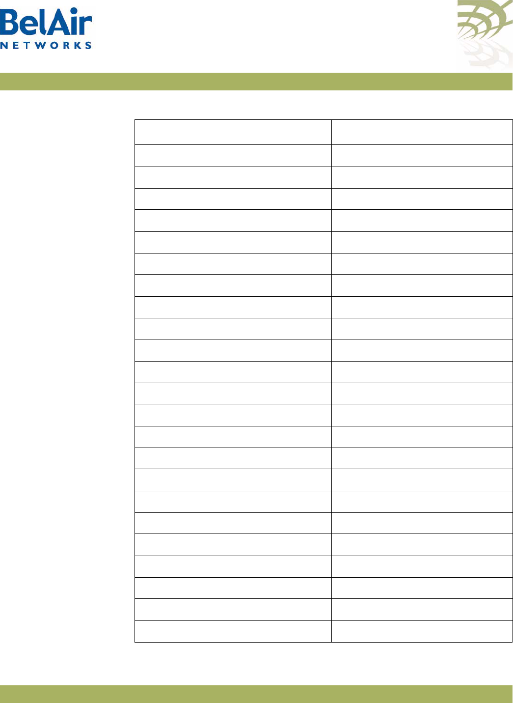 Table 7: BelAir Wi-Fi Radio Summary . . . . . . . . . . . . . . . . . . . . . . . . . . . . . . .71