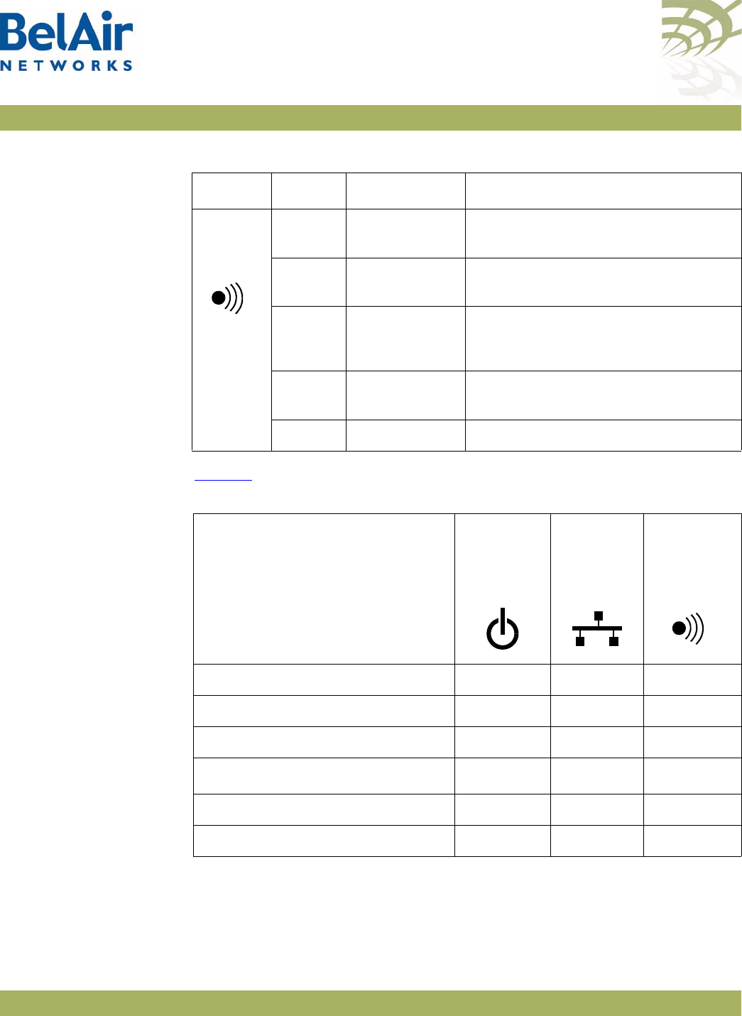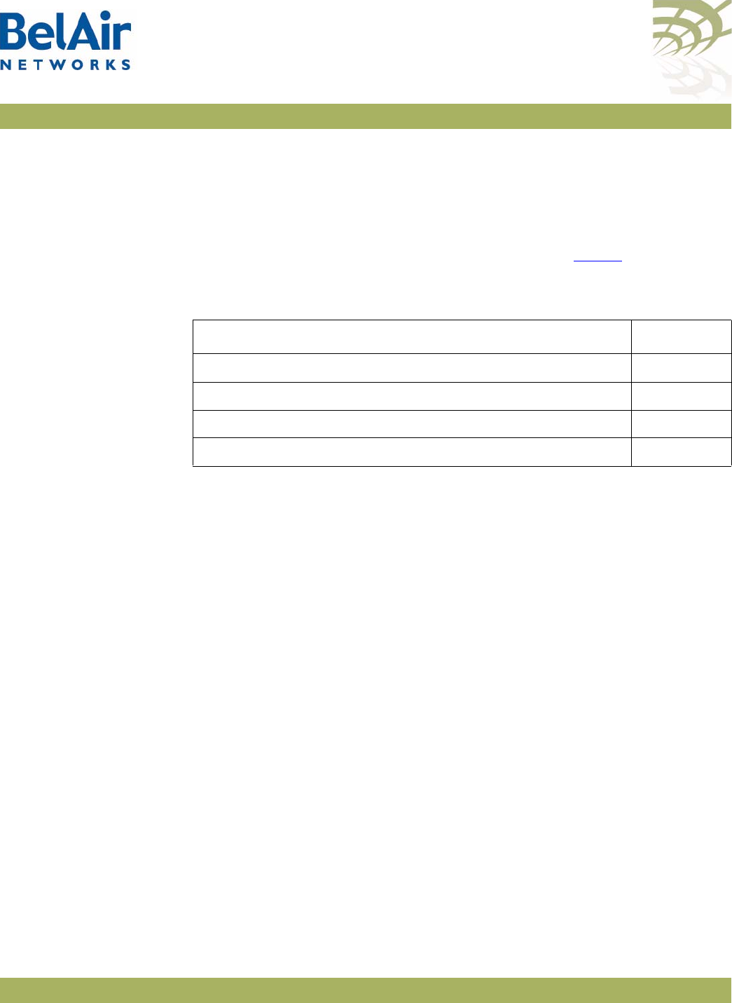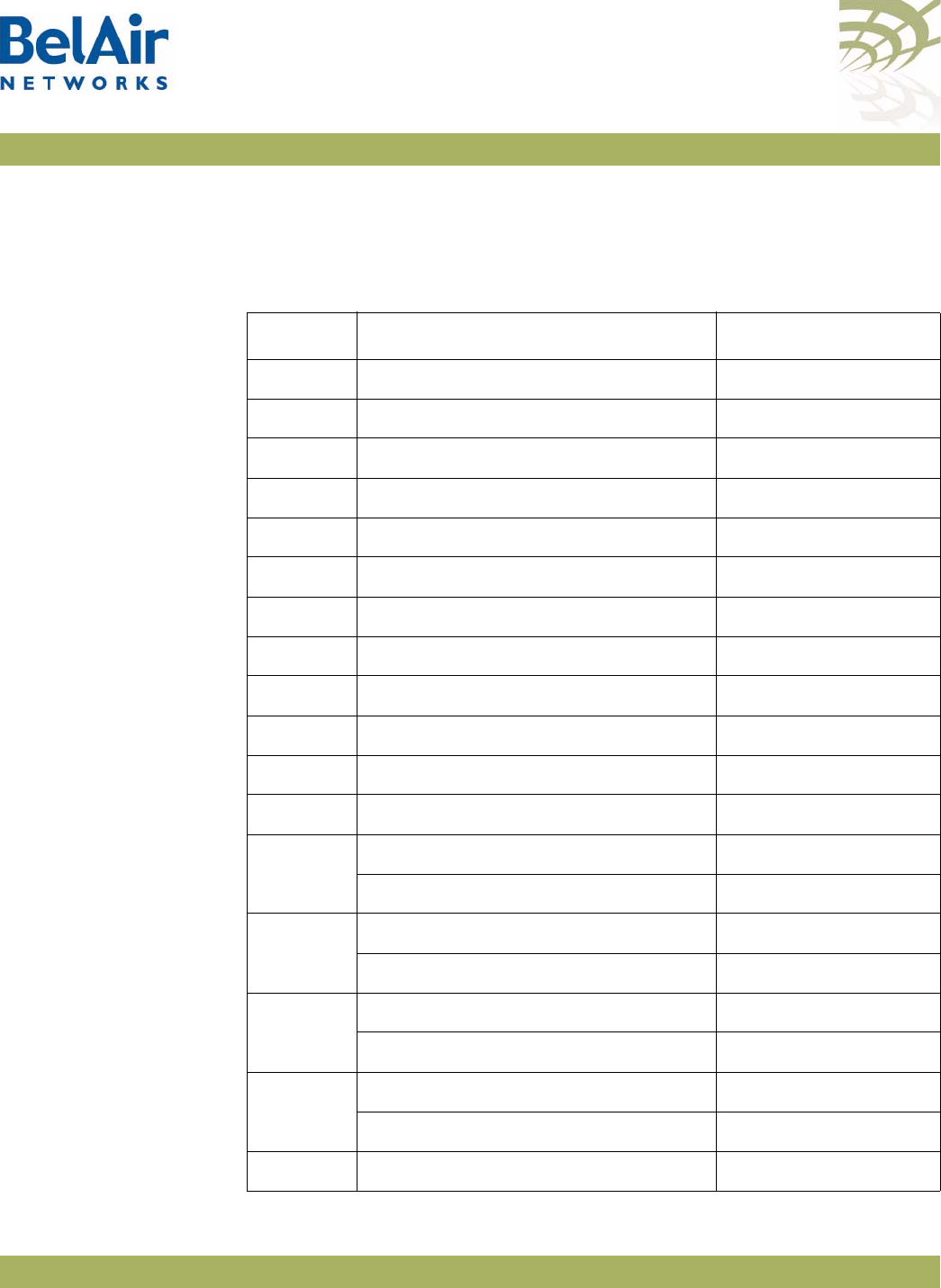 Table 2: BelAir20 Antenna Connectivity . . . . . . . . . . . . . . . . . . . . . . . . . . . . . .7