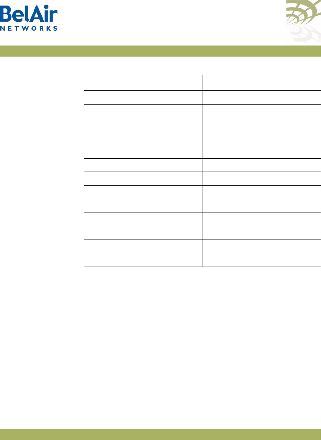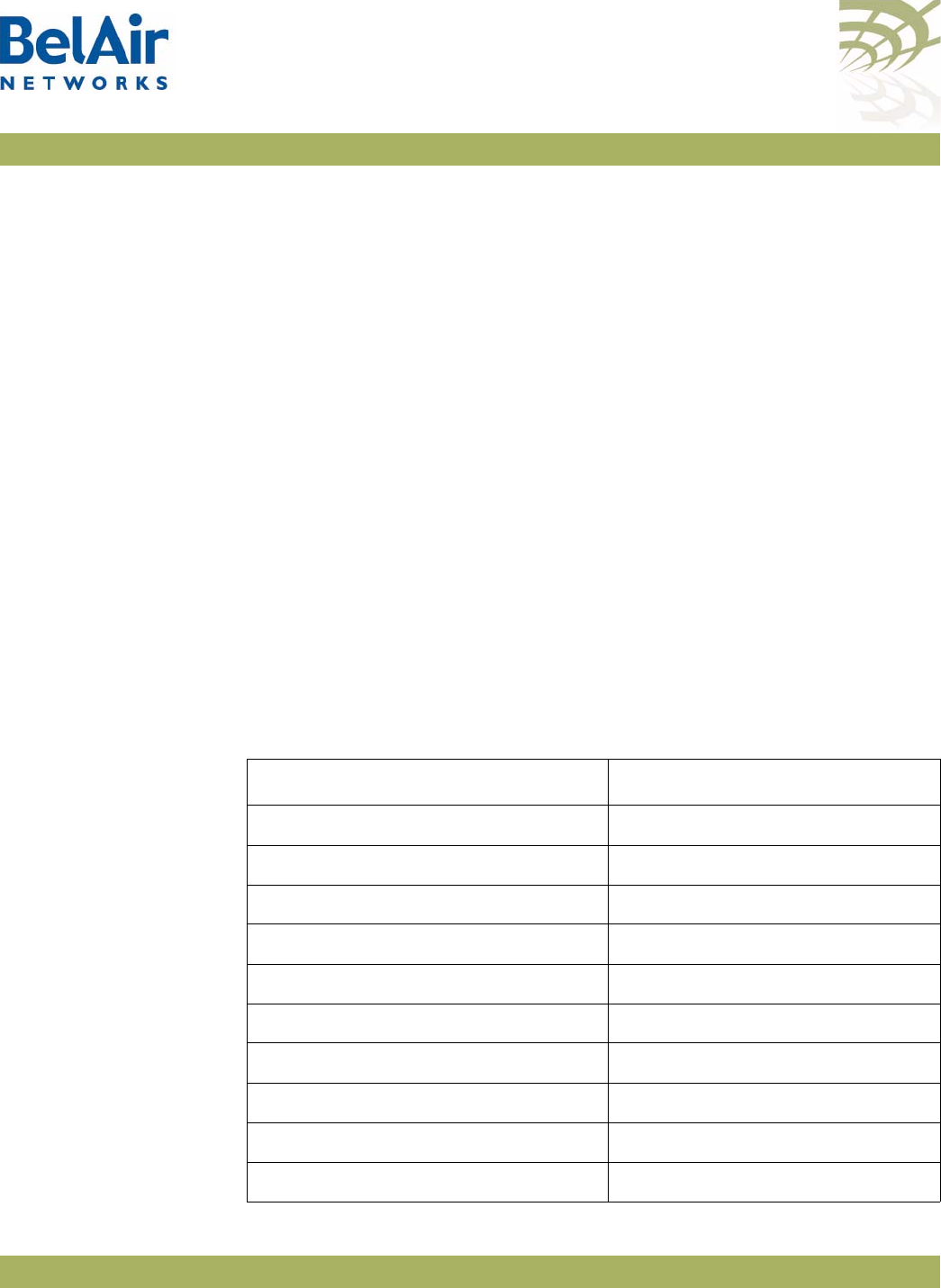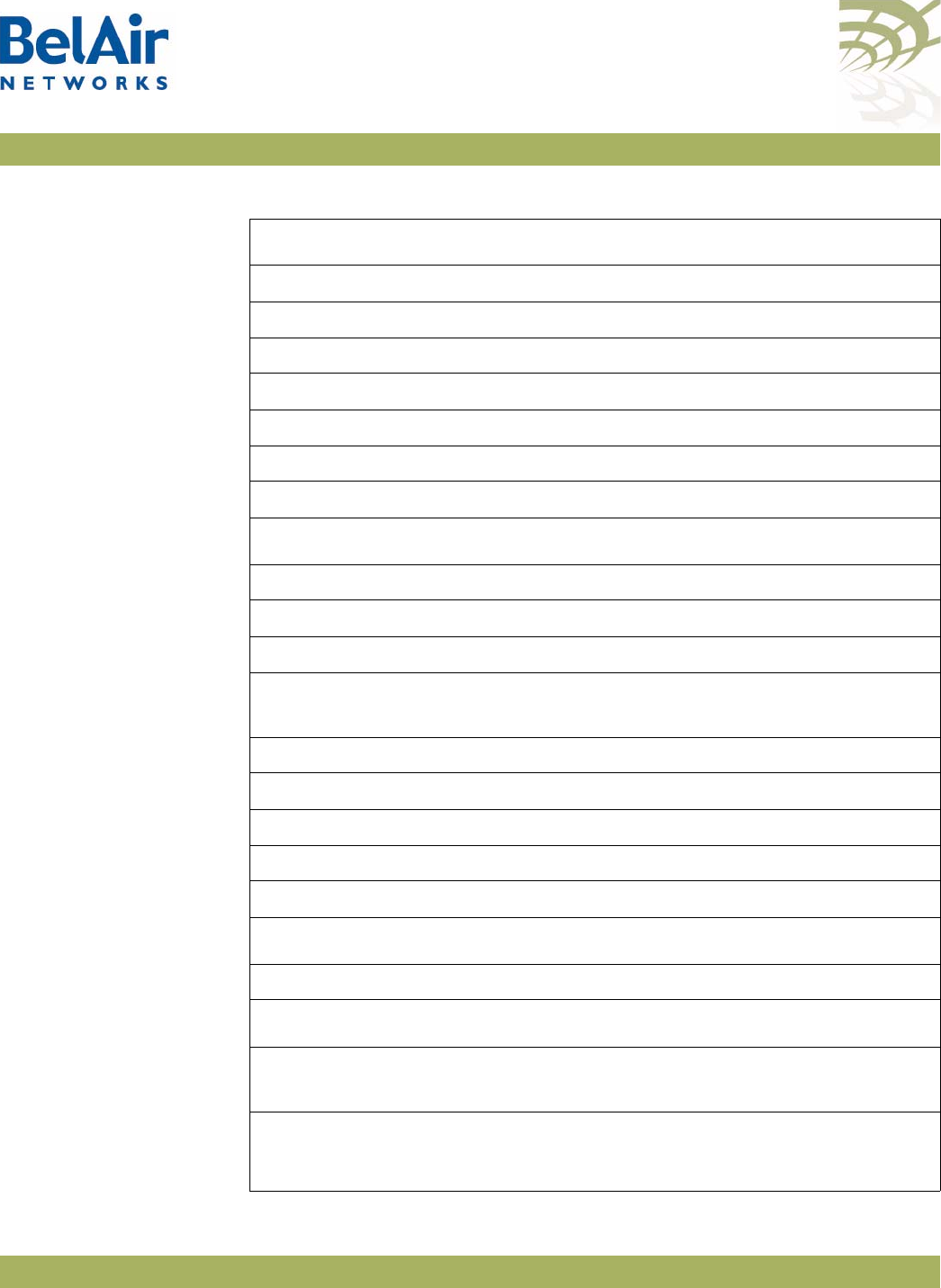Table 7: BelAir Networks Wi-Fi Radio Summary. . . . . . . . . . . . . . . . . . . . . .101