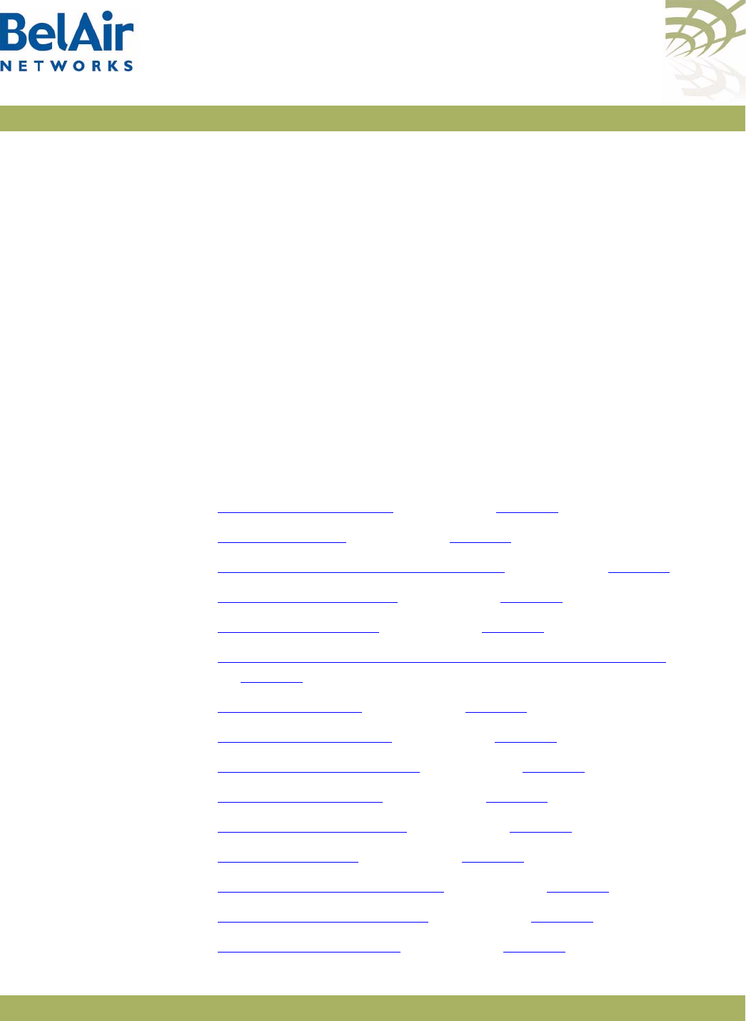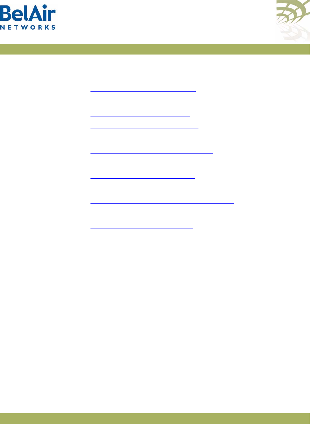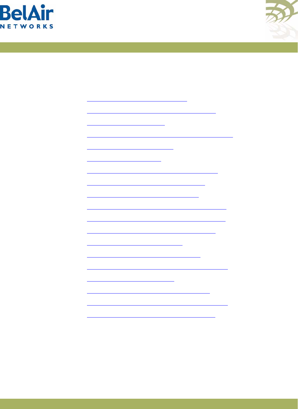 Table 4: BelAir Networks Enterprise MIBs . . . . . . . . . . . . . . . . . . . . . . . . . . .23