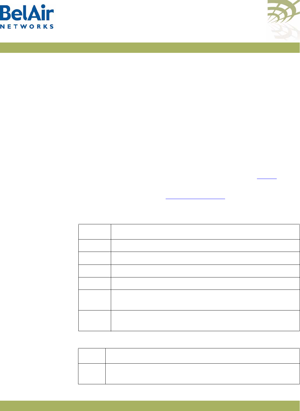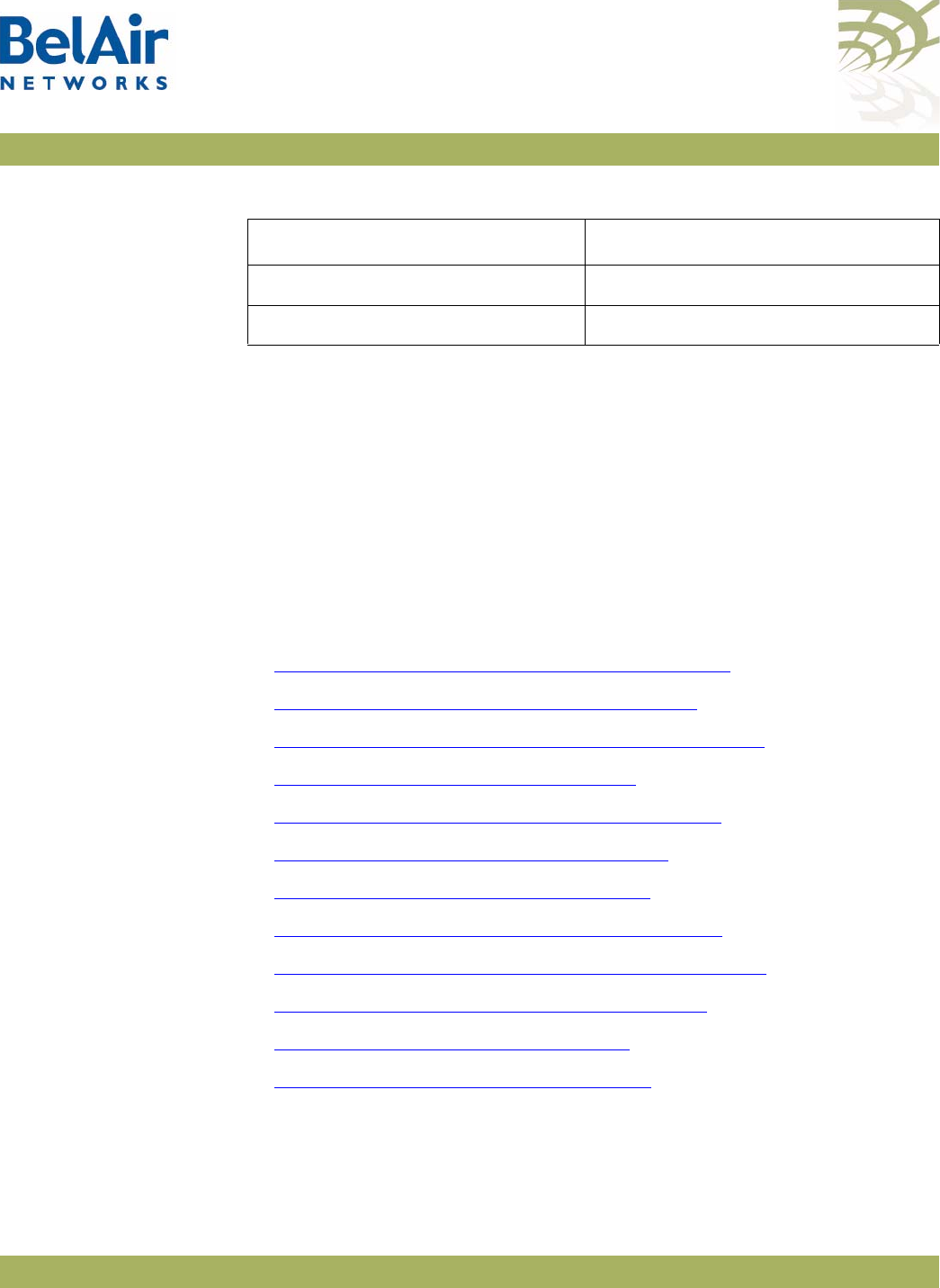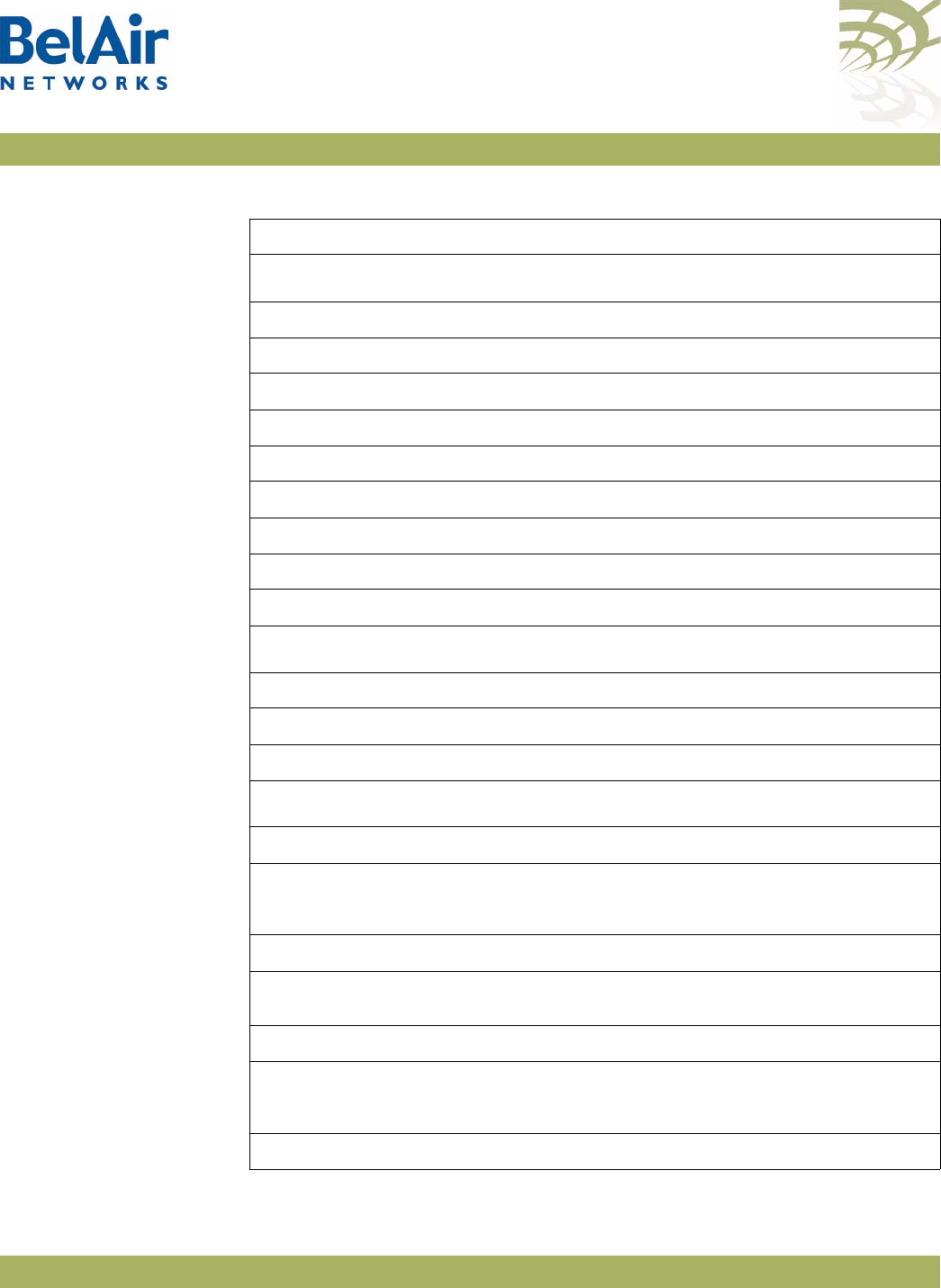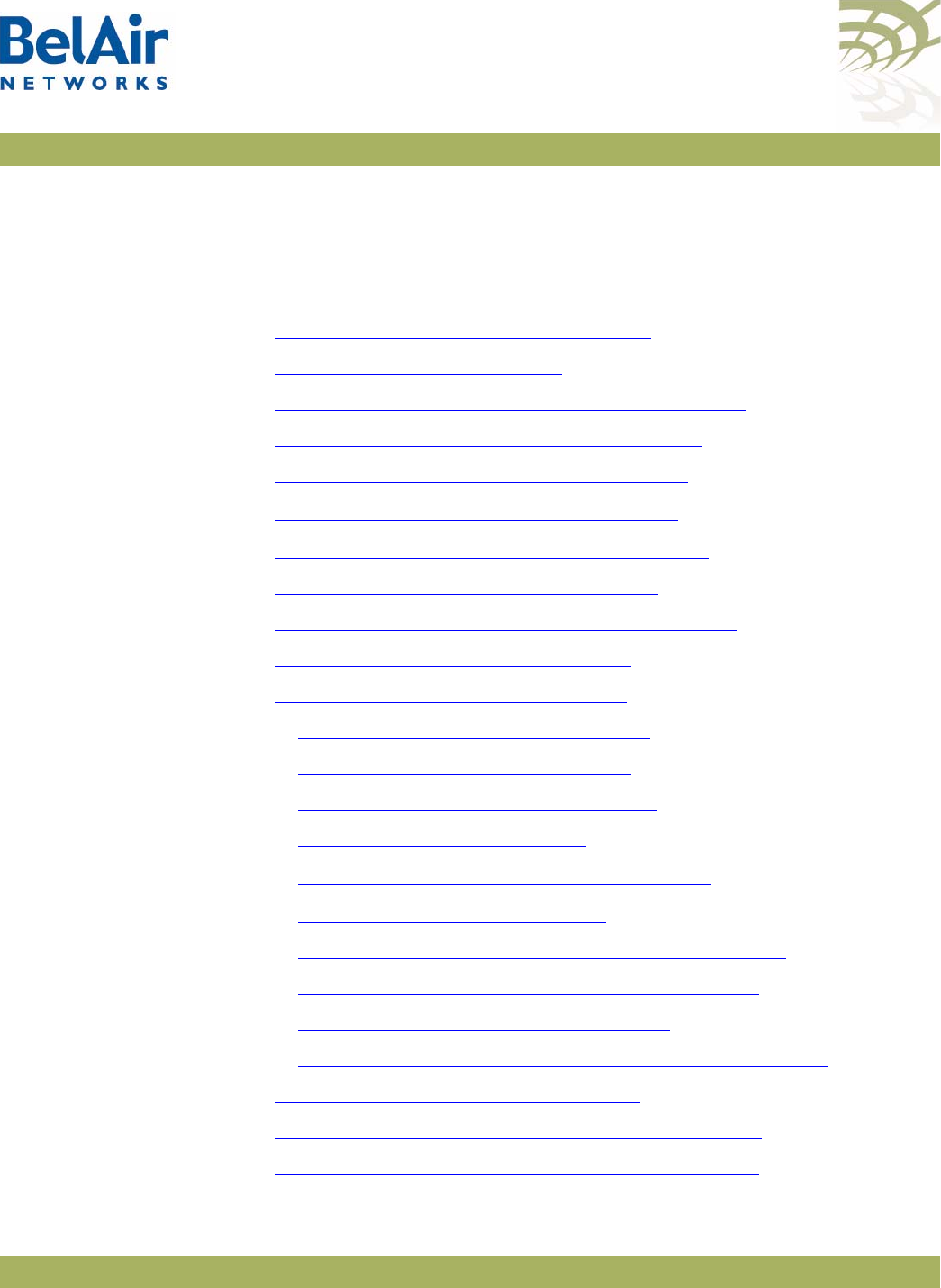 Table 4: BelAir Networks Enterprise MIBs . . . . . . . . . . . . . . . . . . . . . . . . . . .23