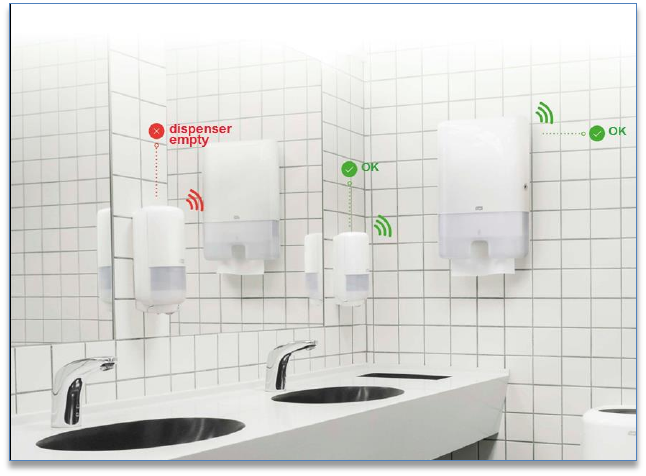 The service consists of Tork dispensers equipped with sensors that communicate the