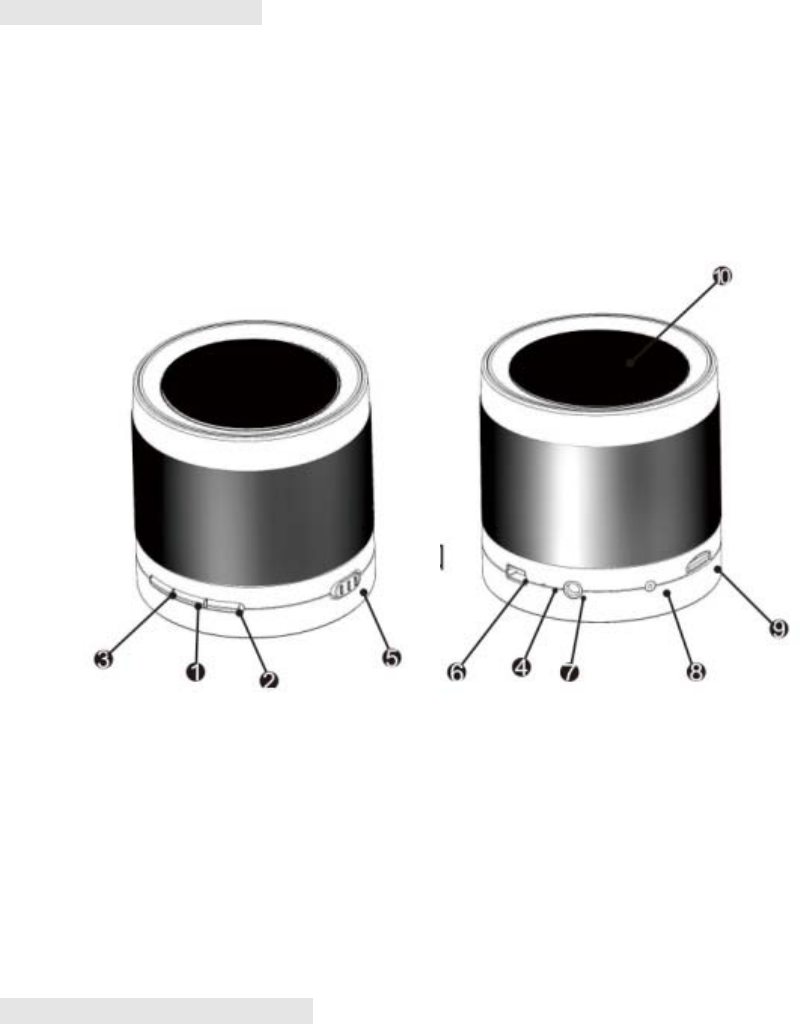 3. Previous Song/Volume Down 4. Indicate Light