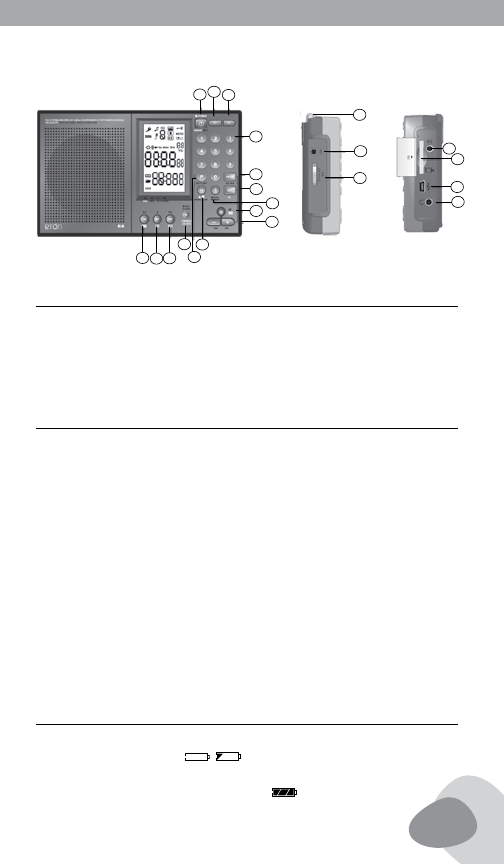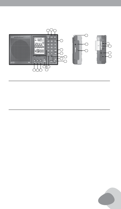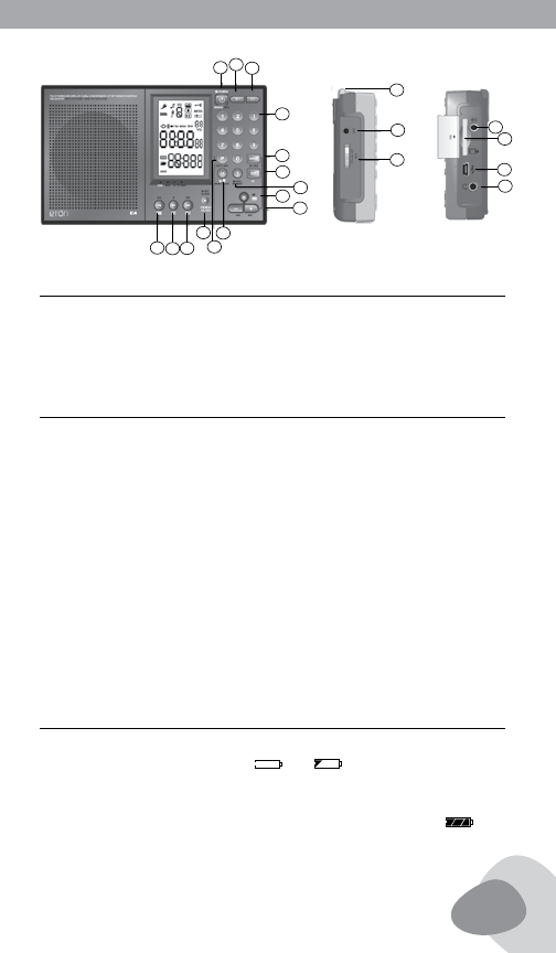 13. Radio: SW Band, Meter Band; MP3: Select EQ mode; Power Off: