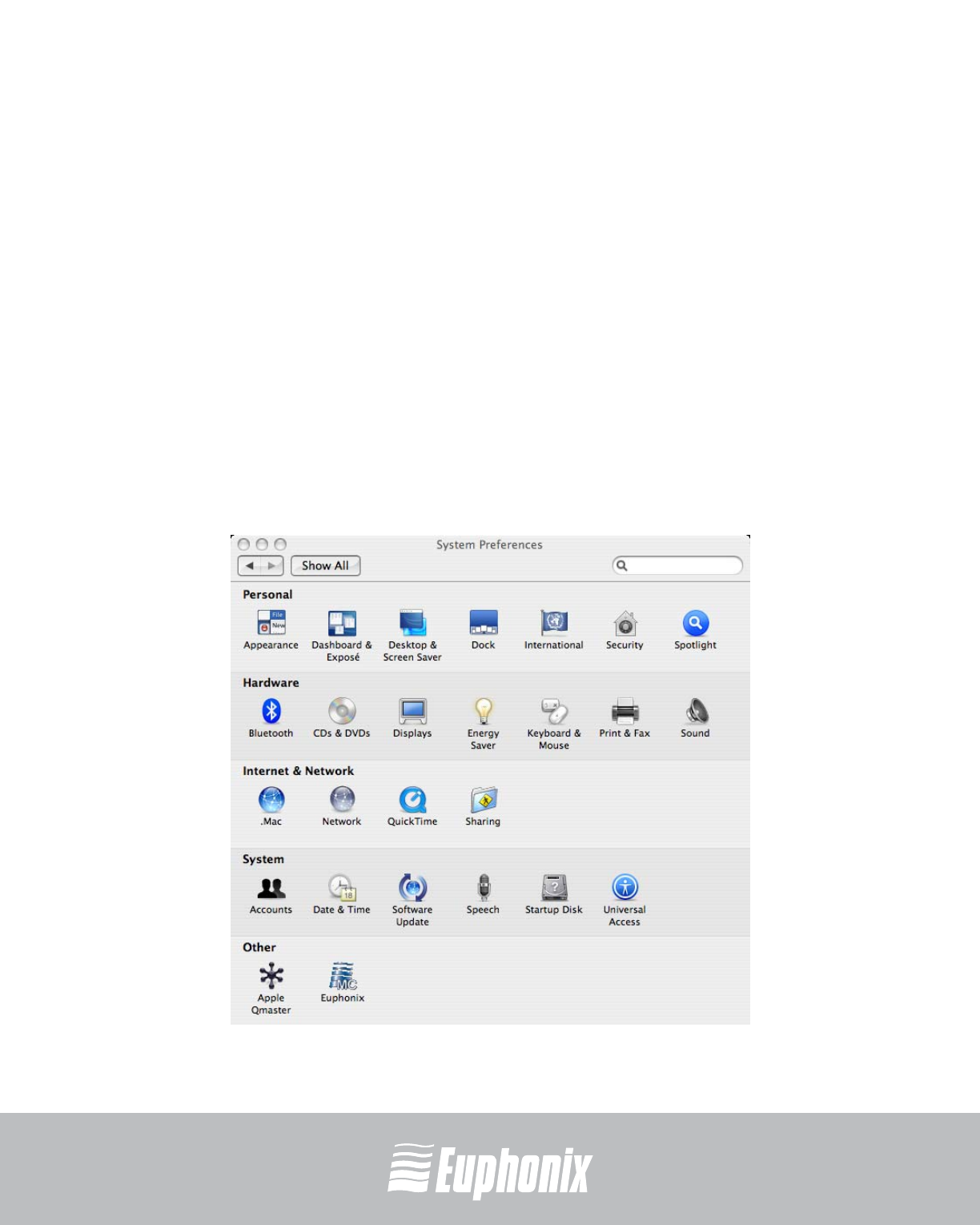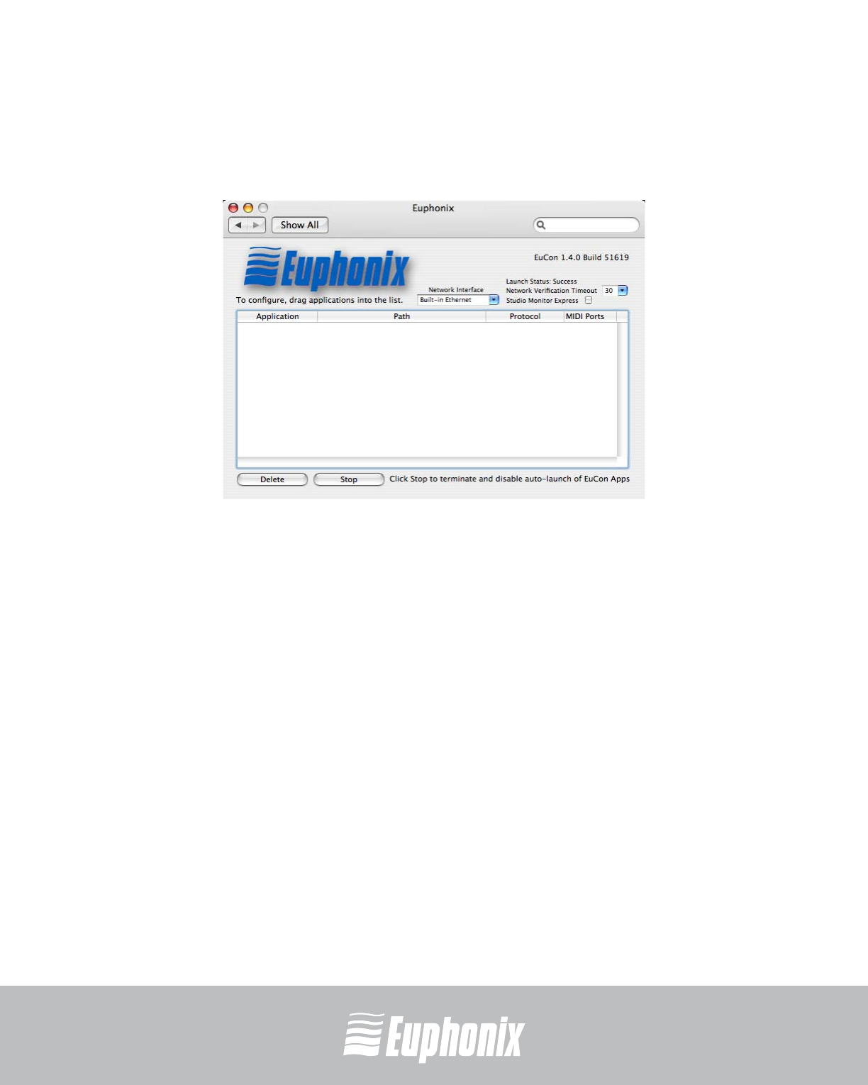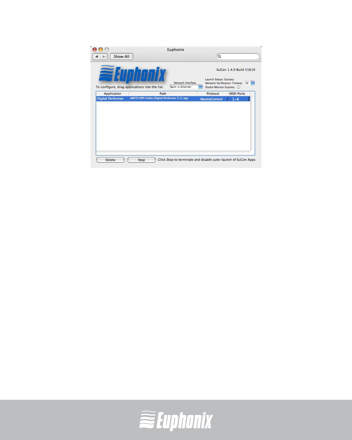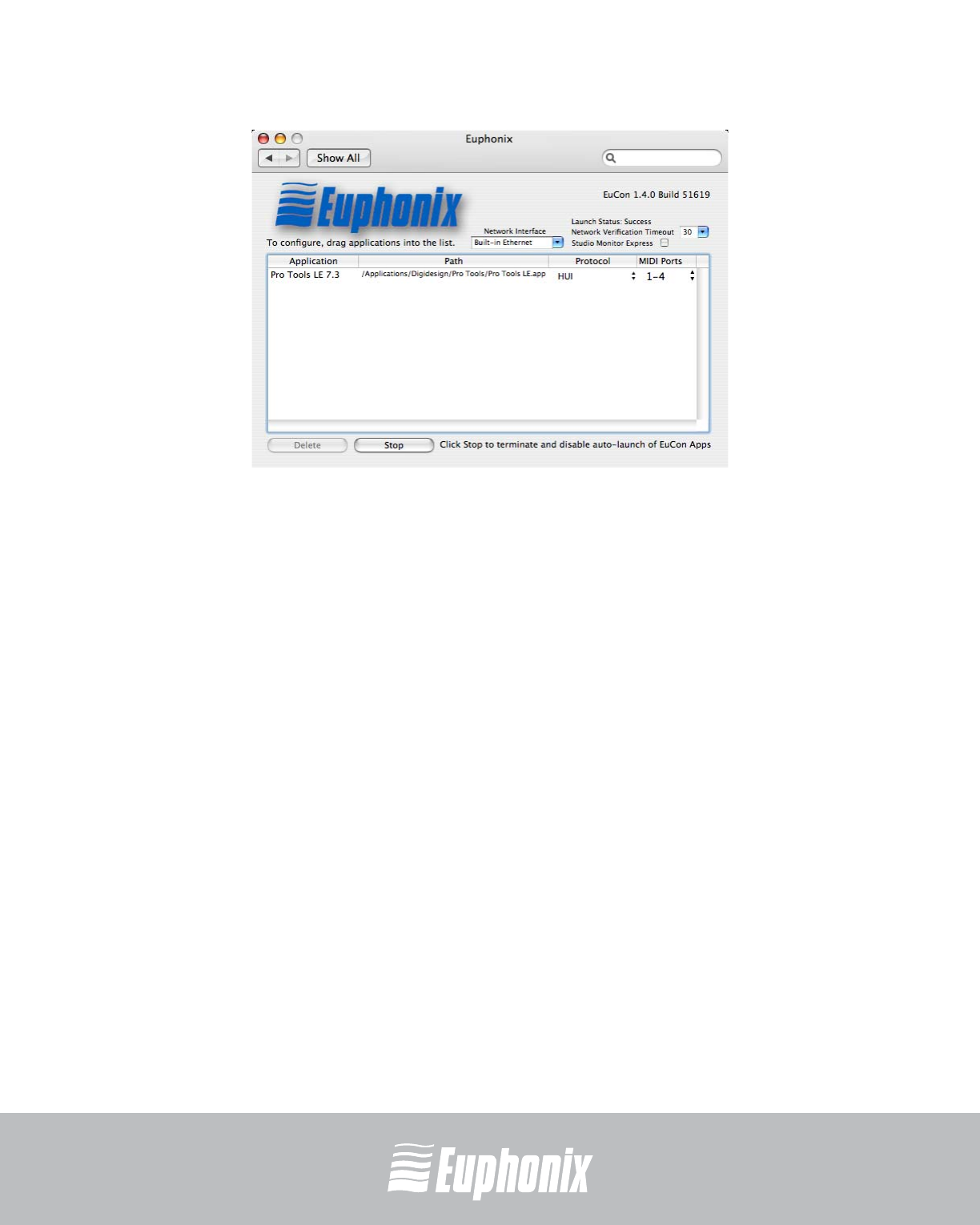 • Make sure the Euphonix MIDI device in Audio MIDI Setup is blue (active) and