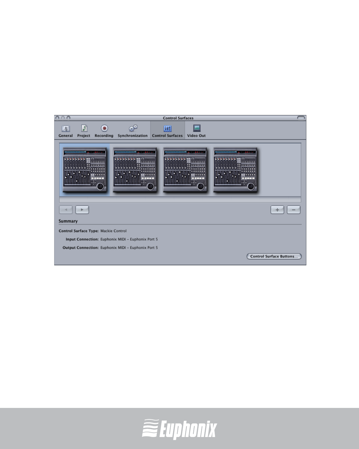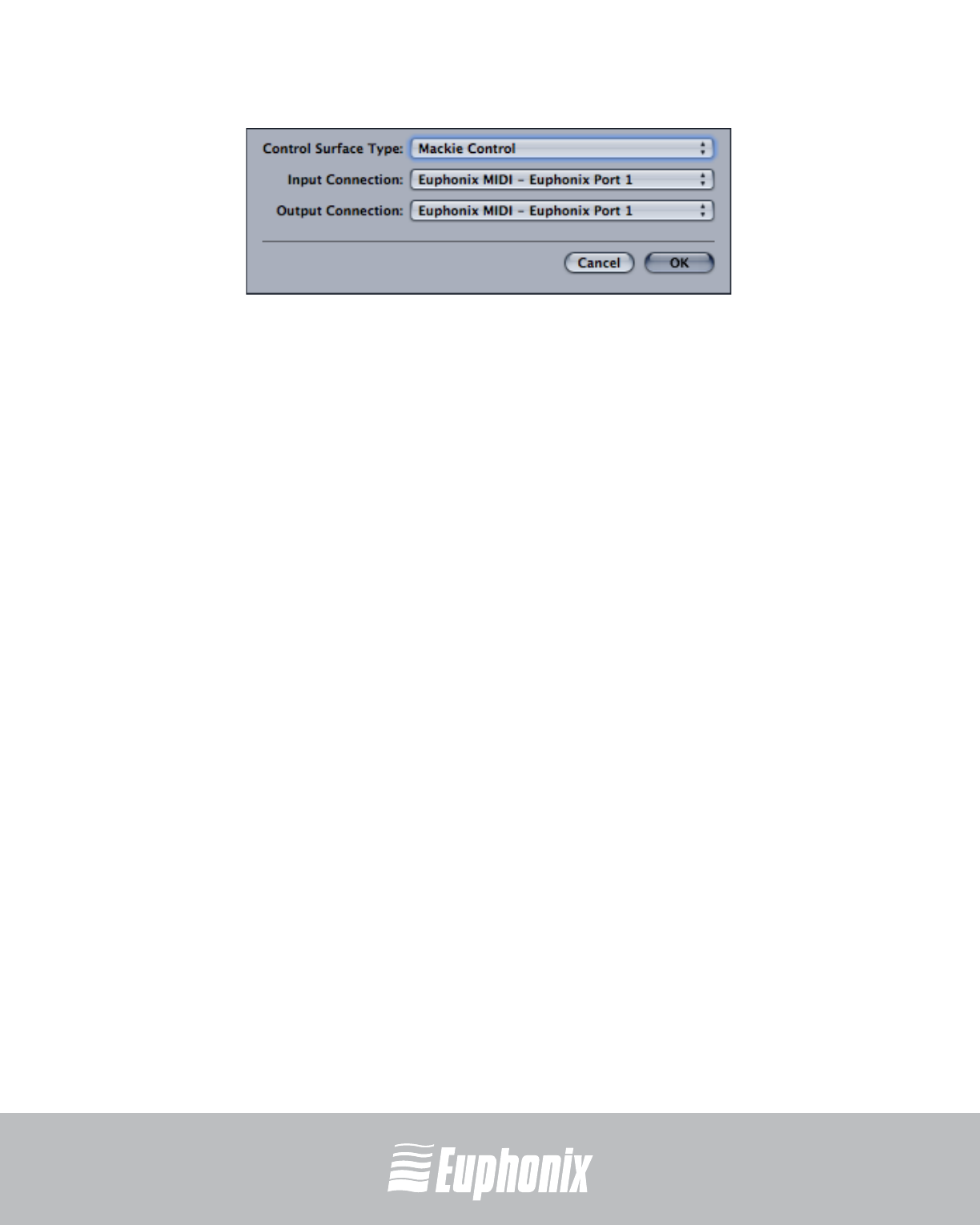 Tools in the Euphonix Preferences Pane. Click on the Receive From and Send