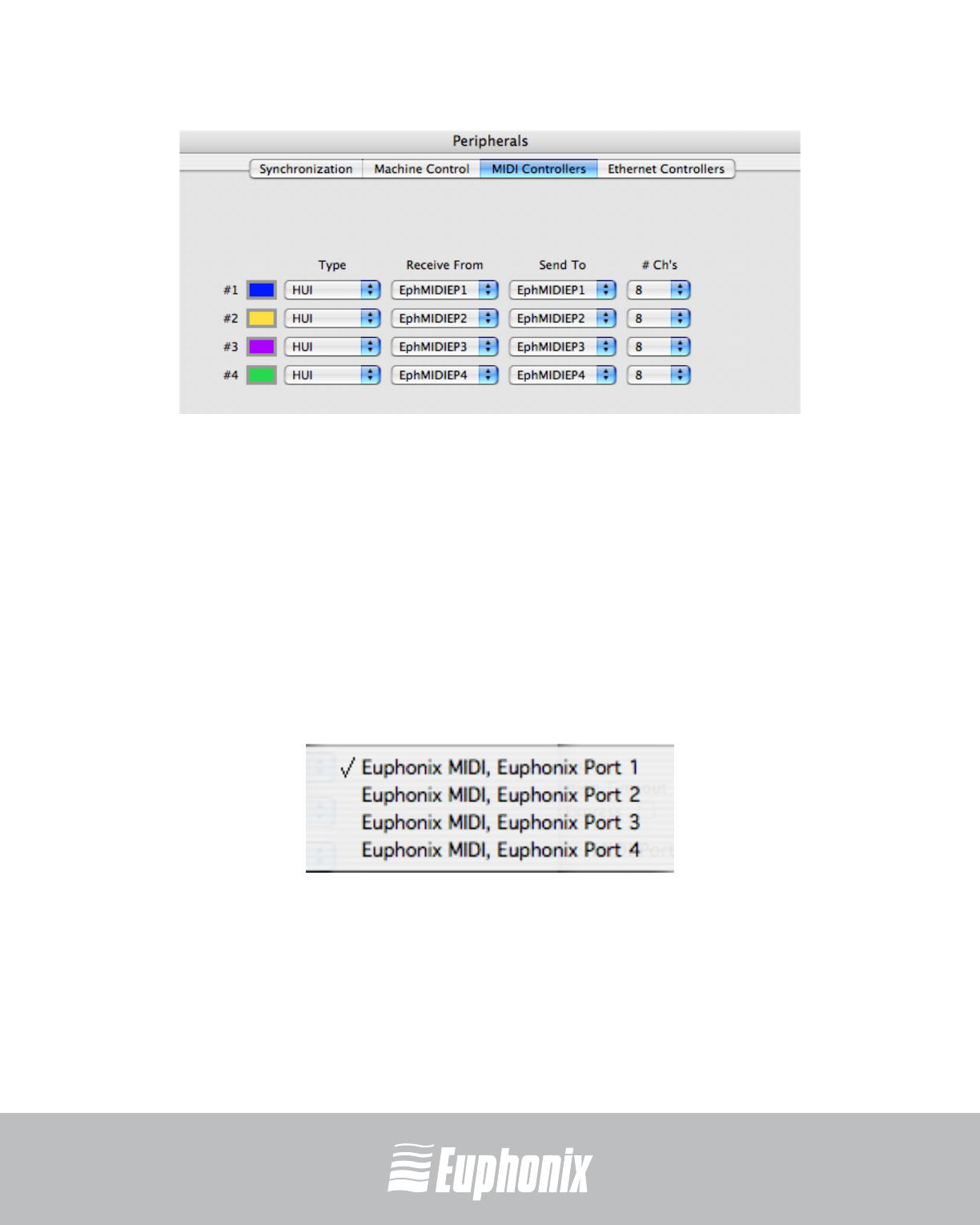 troller’s receive and transmit ports should be set to EphMIDIEP1.