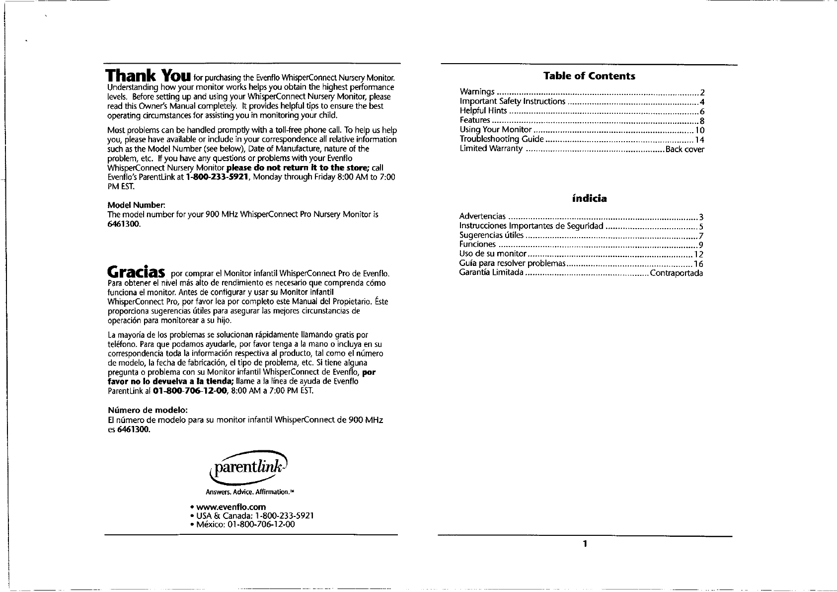 Evenflo 900646REVENFLO Nursery Monitor User Manual