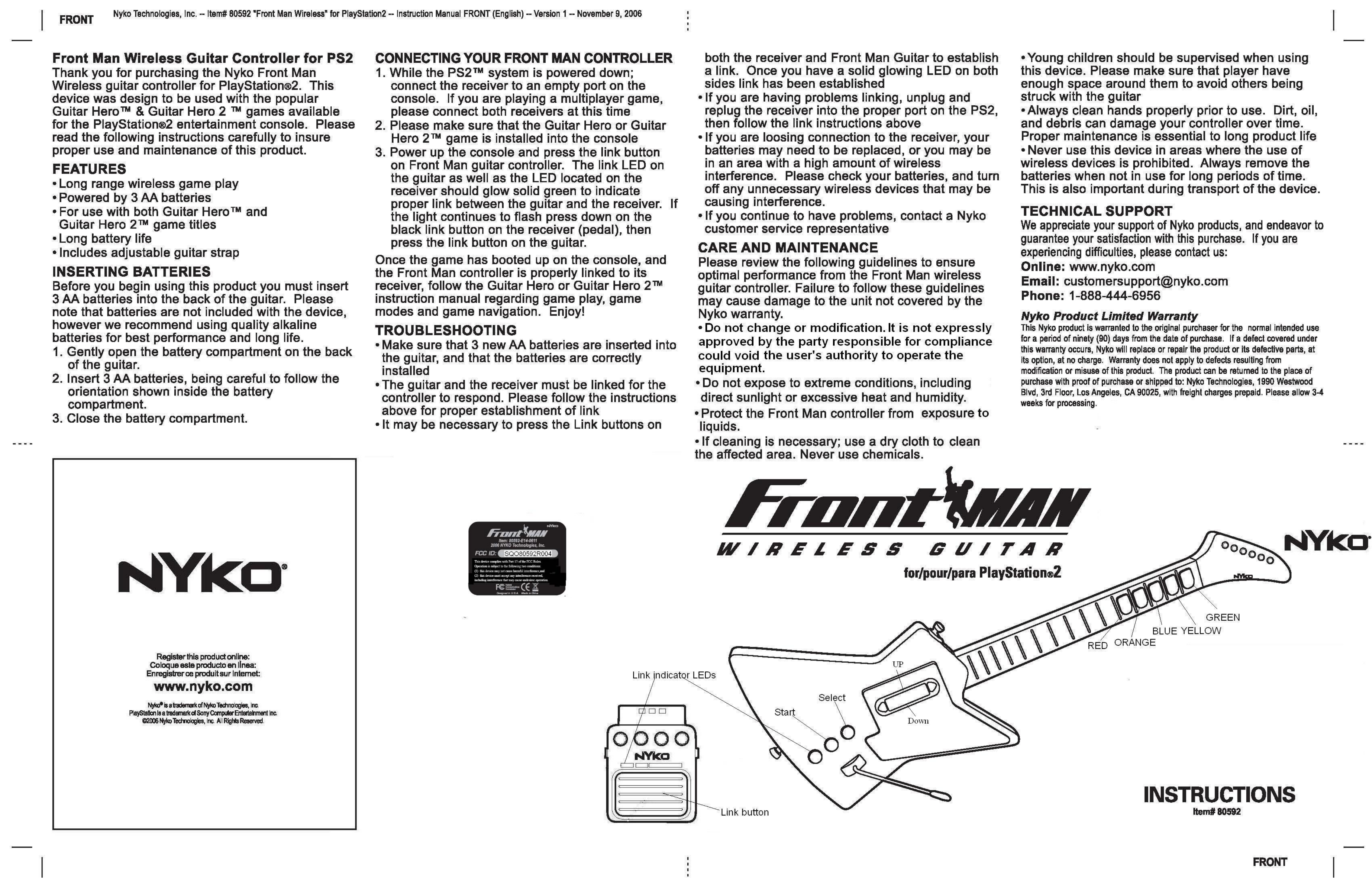 Ever Sparkle Technologies 80592R004 Wireless Guitar Controller for PS-2 User Manual