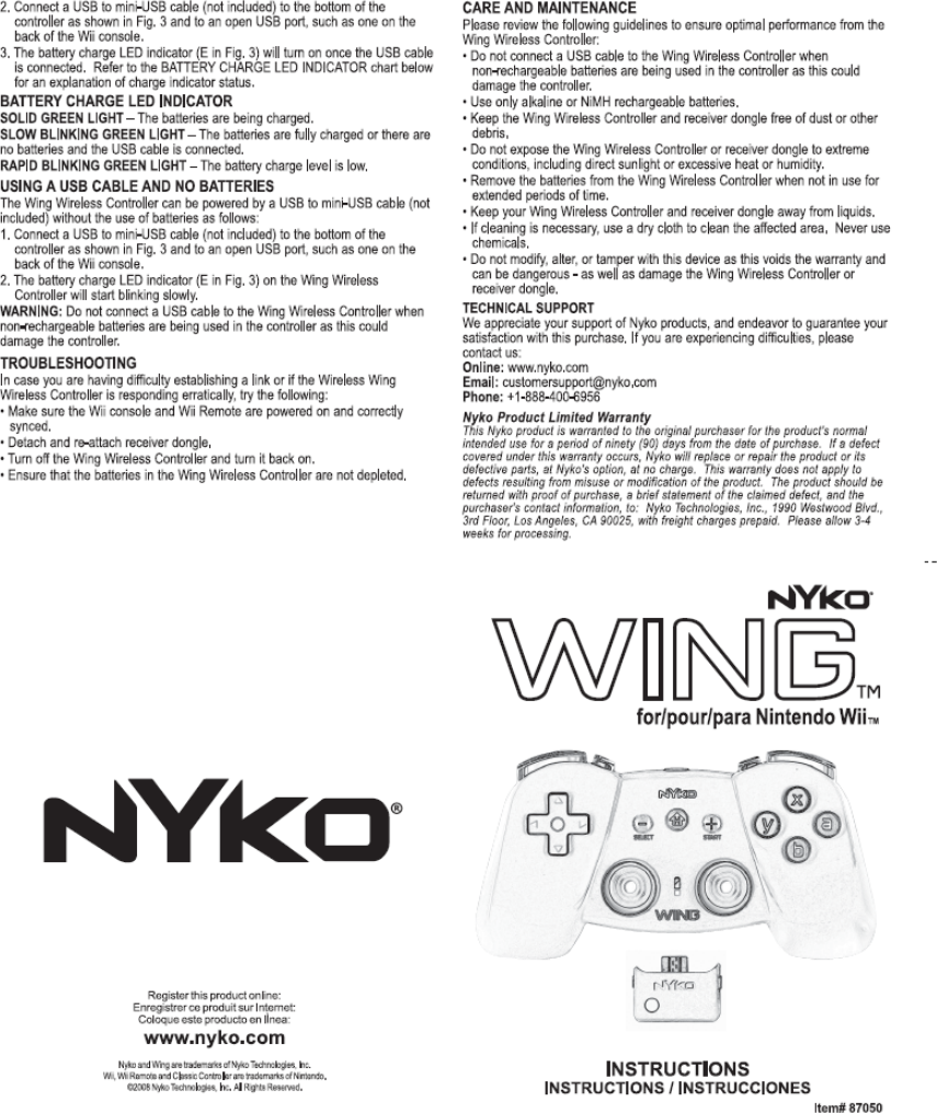 Ever Sparkle Technologies 87050T03 Wii Wireless WING User Manual