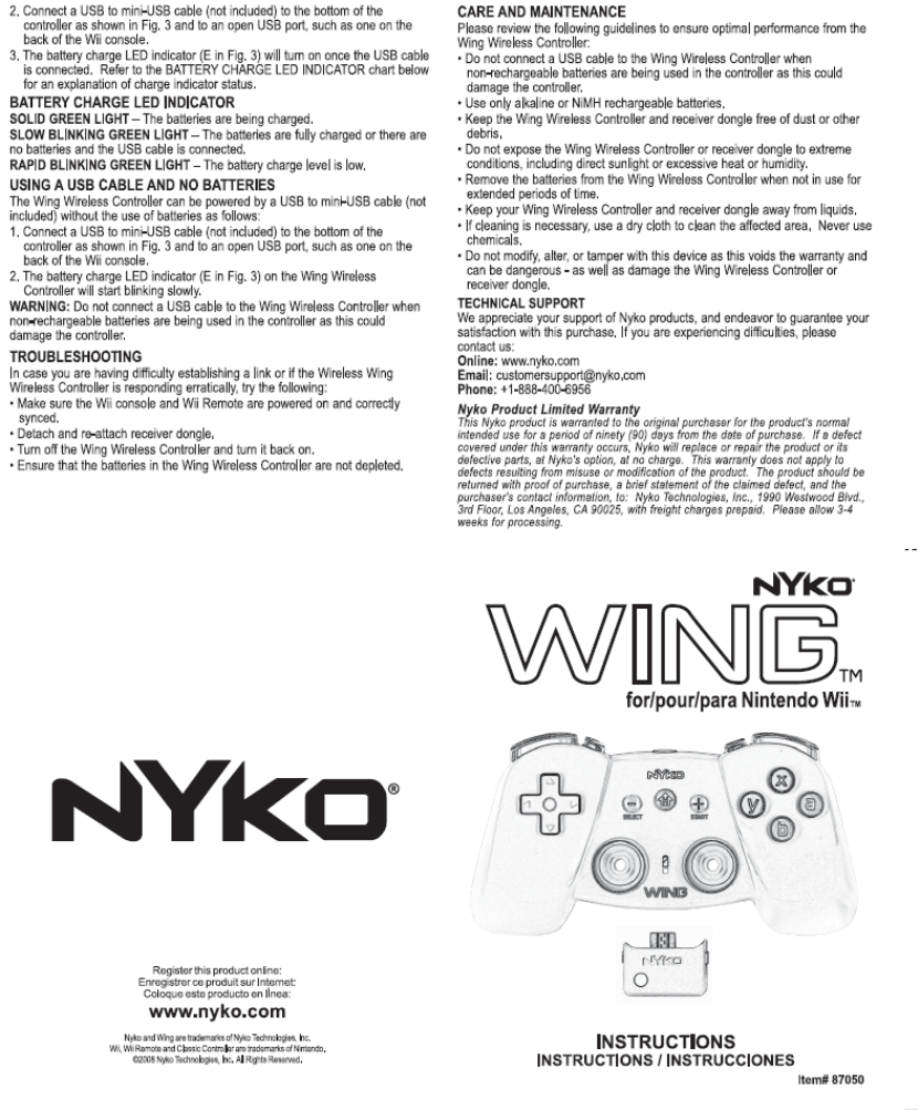 Ever Sparkle Technologies 87050T03 Wii Wireless WING User Manual