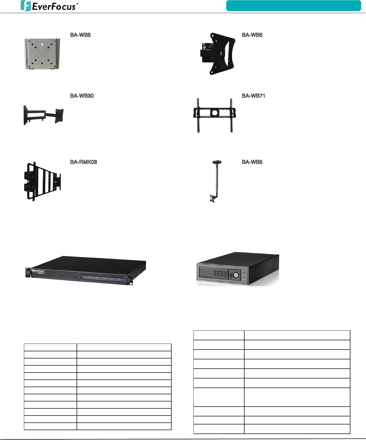2012 EverFocus Product Catalog Vs 1.1 - Models vary in different countries. Visit www.everfocus.com and select your country for additional ordering and specication information.