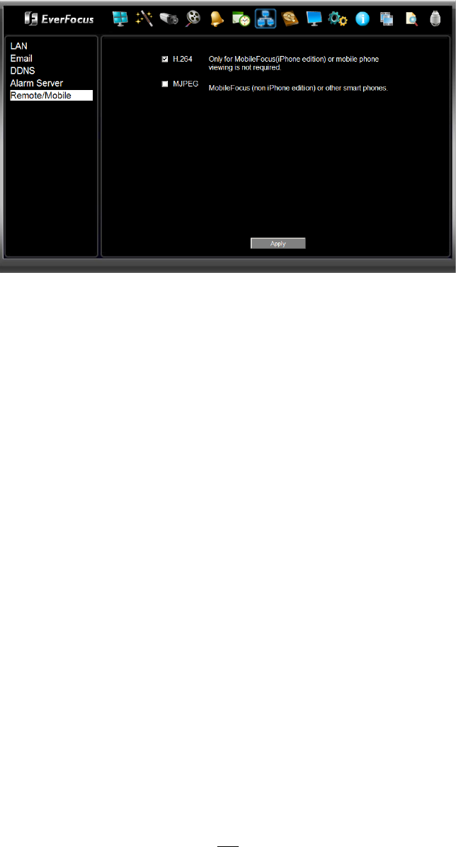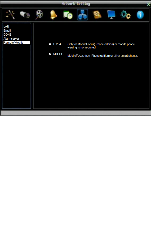 MJPEG: MJPEG mode is required for the standard mobile phone stream (address:http://[IP-