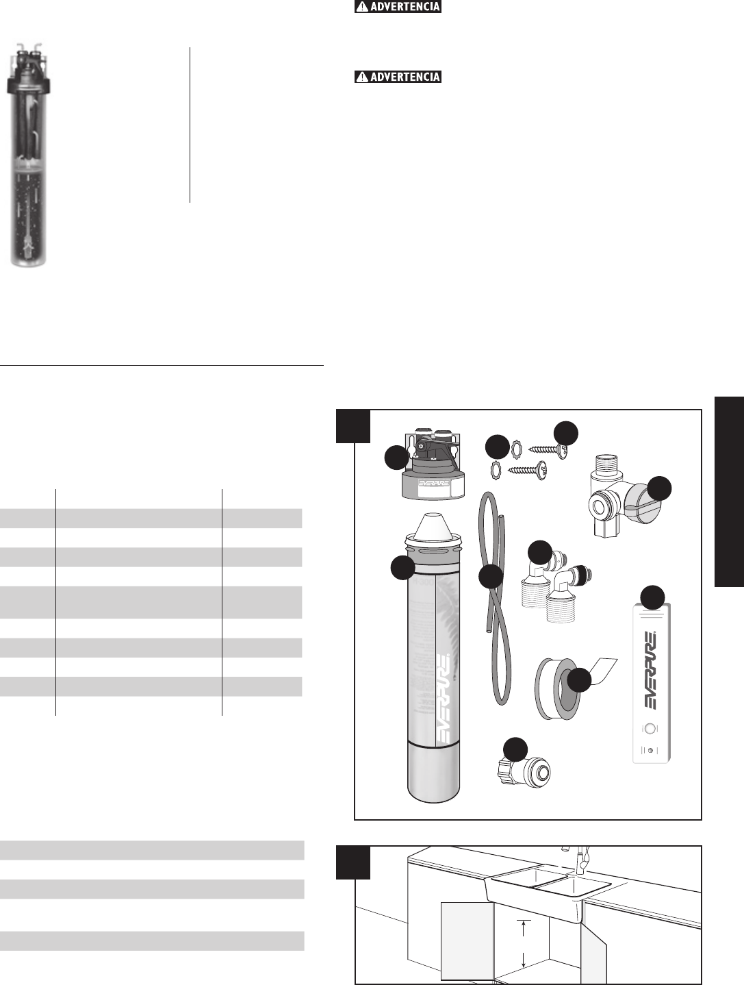 cumplan con las especificaciones de Everpure. Consulte la sección