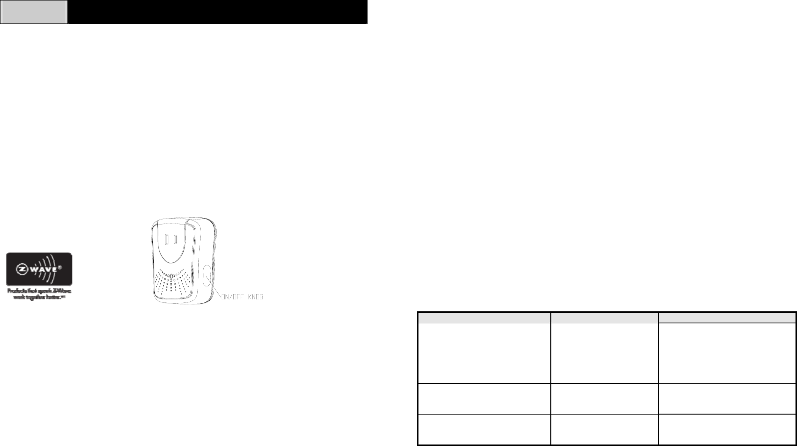 plug-in On/Off Module is a Z-WaveTM enabled device and is fully compatible with
