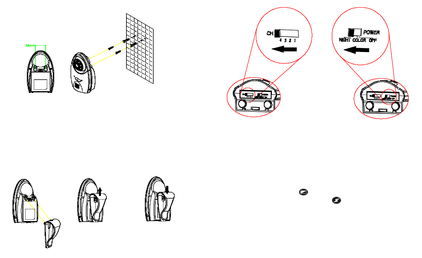 1. Set the channel switch (numbered 1~4) that matches to that of the Monitor