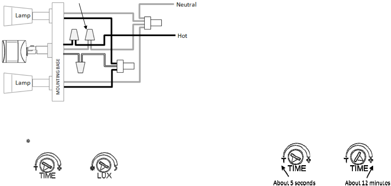 sensor and the floodlight. The lux level and the timer can be set through knobs on