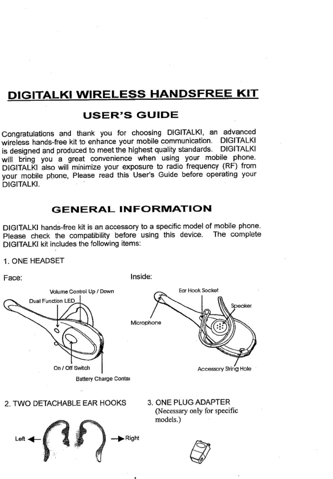 Everspring Industry Co FE001 Wireless Handsfree Headset Kit User Manual scan 6
