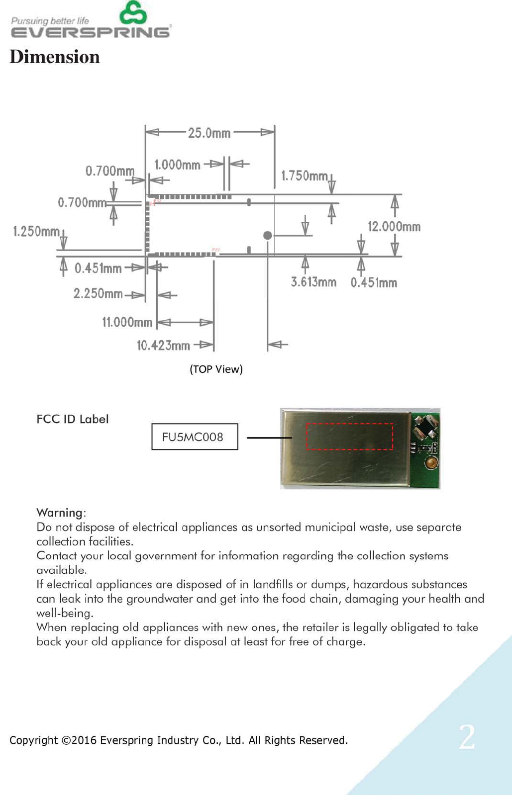 Everspring Industry Co MC008 Z-Wave Module User Manual MC008 1 Module Specx